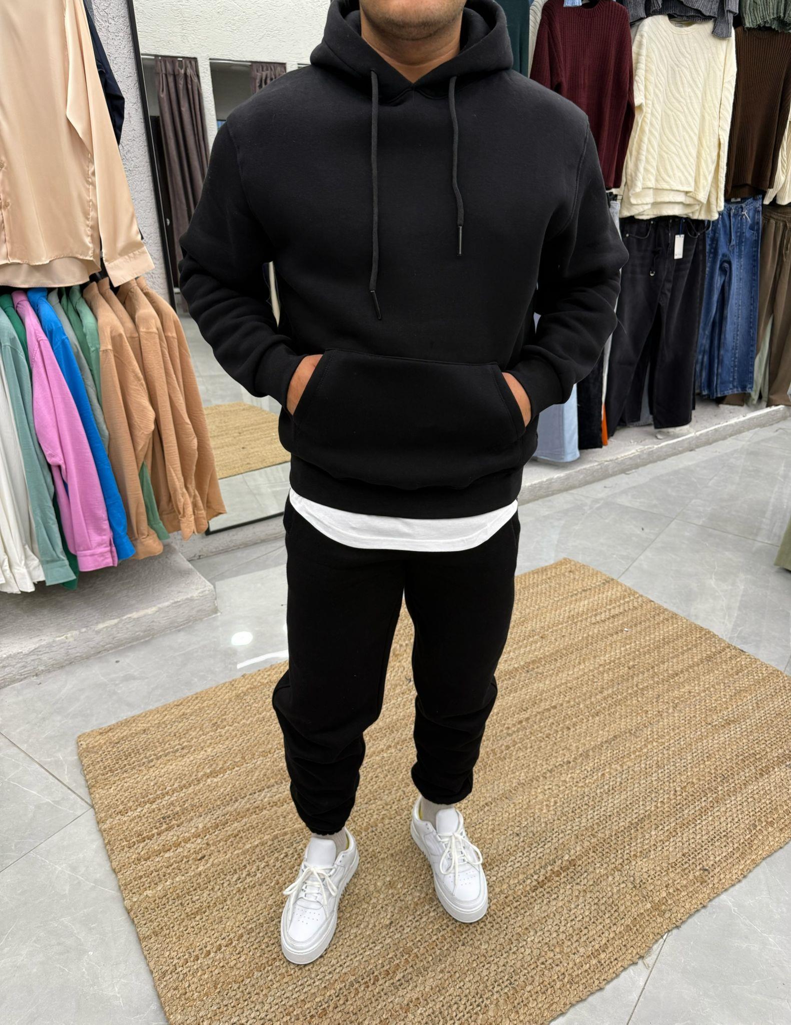 3 İplik Kapüşonlu Eşofman Takımı Siyah
