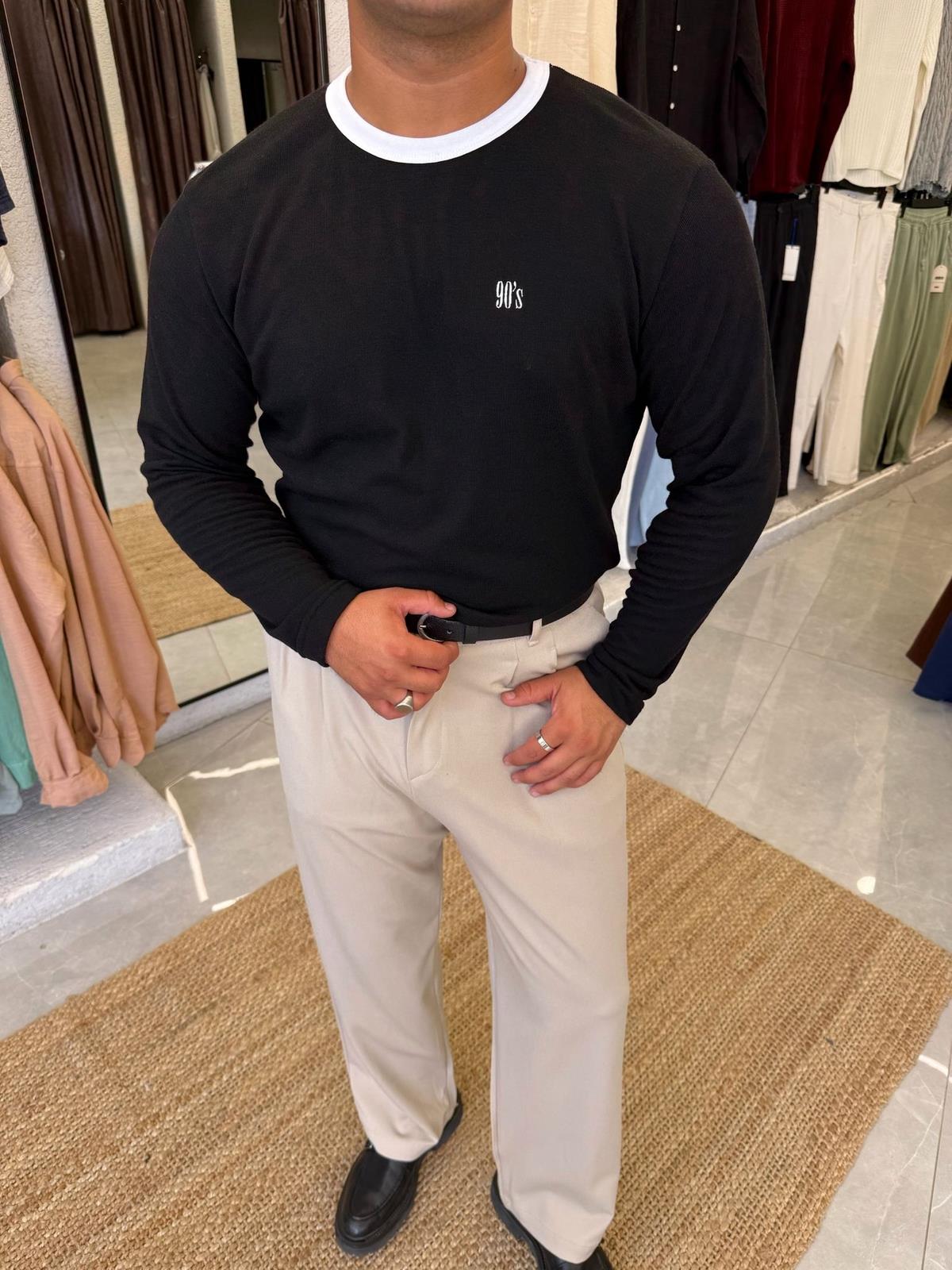 90’s Nakışlı Sweat Siyah