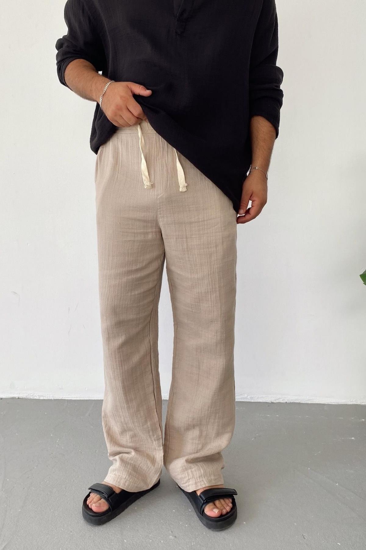 Kahve Müslin Kumaş Baggy Pantolon Lacivert Müslin Kumaş Baggy Pantolon