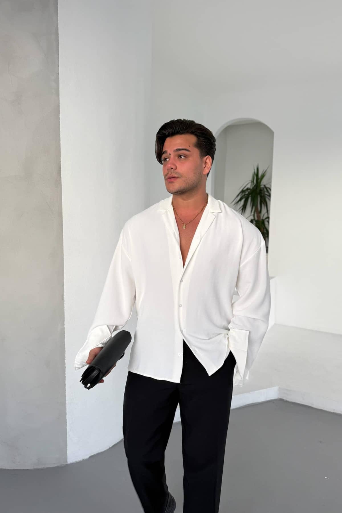 Beyaz Aerobin Kumaş Gömlek