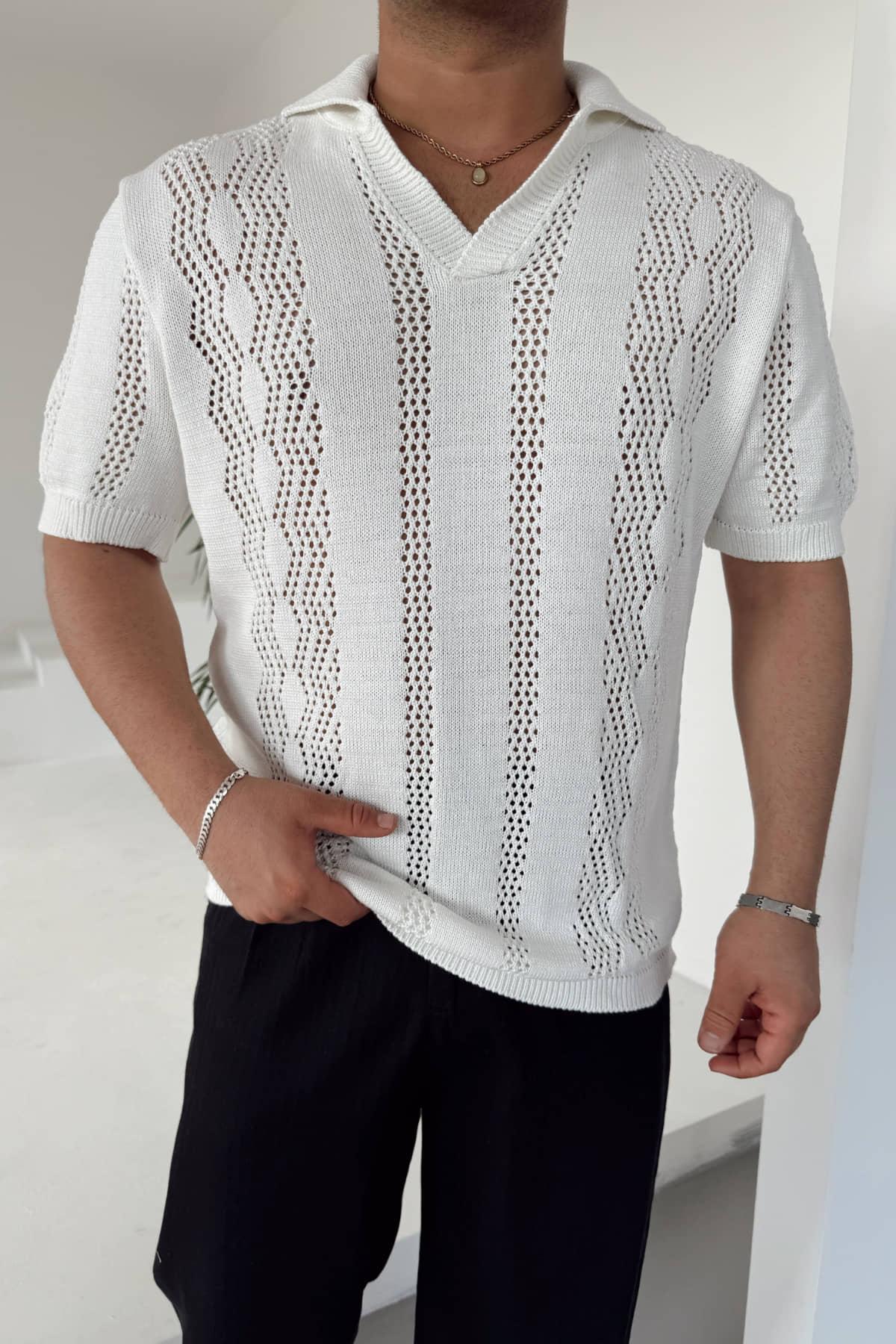 Gri Delikli Polo Yaka Triko Krem Delikli Polo Yaka Triko Vizon Delikli Polo Yaka Triko Lacivert Delikli Polo Yaka Triko