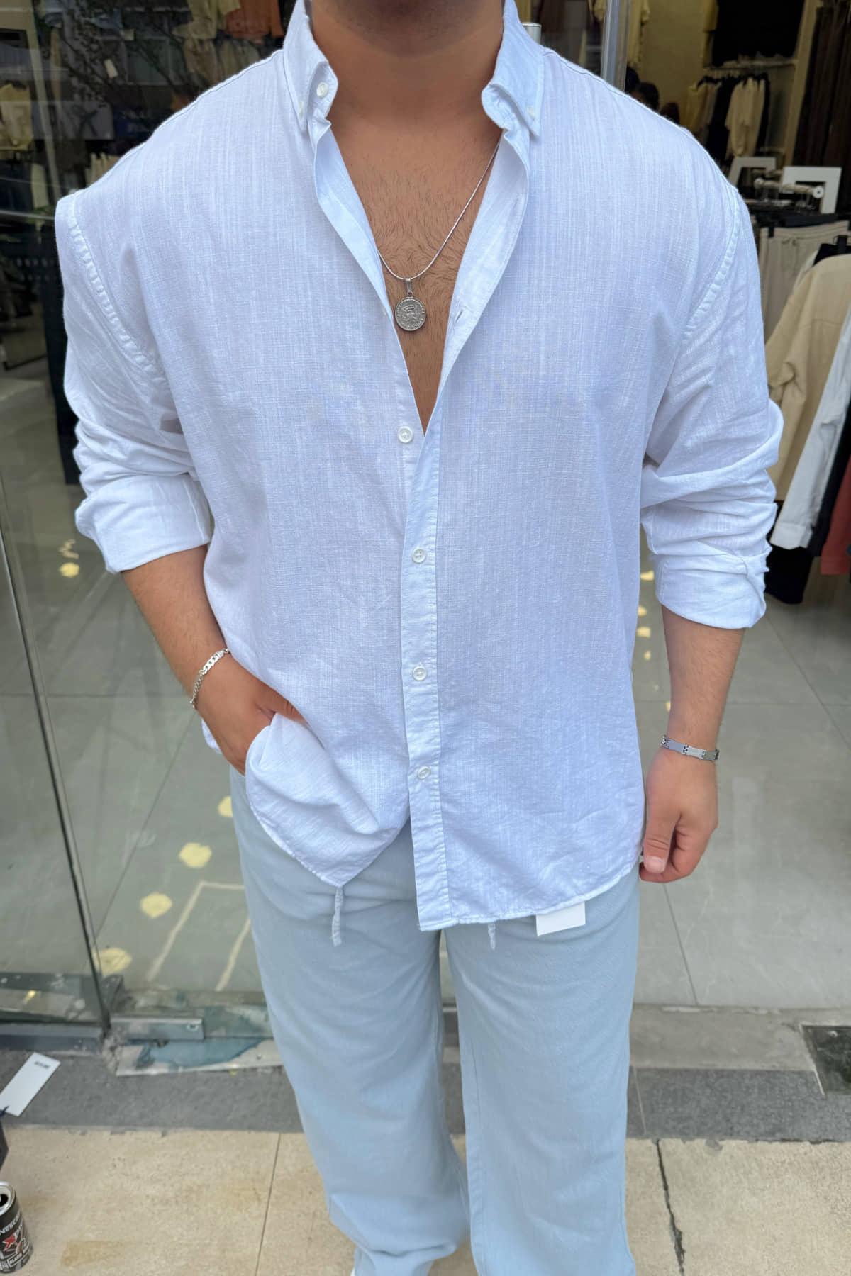 Beyaz Fresh Keten Gömlek