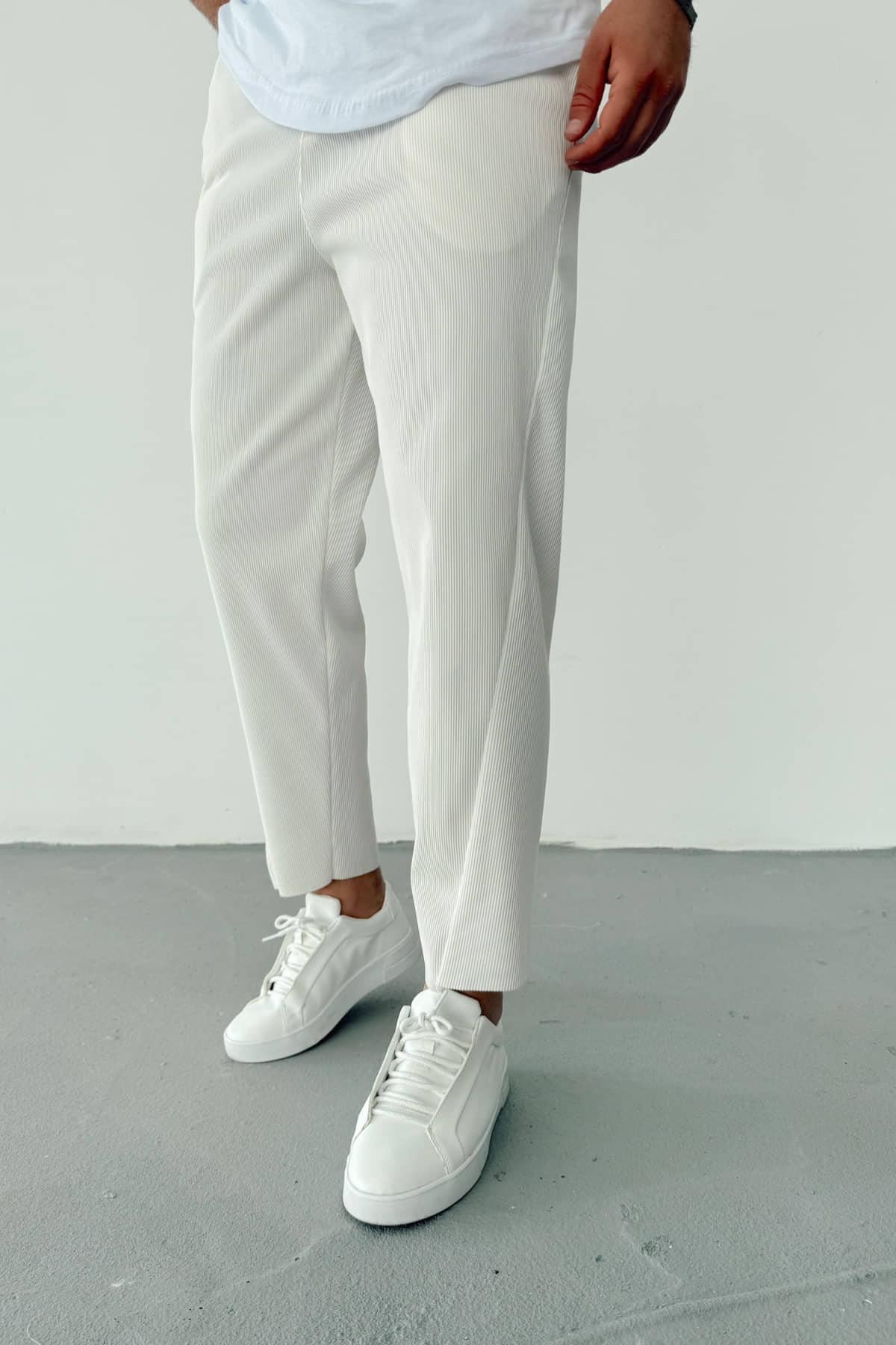 Beyaz İnce Fitilli Asimetrik Kesim Pantolon