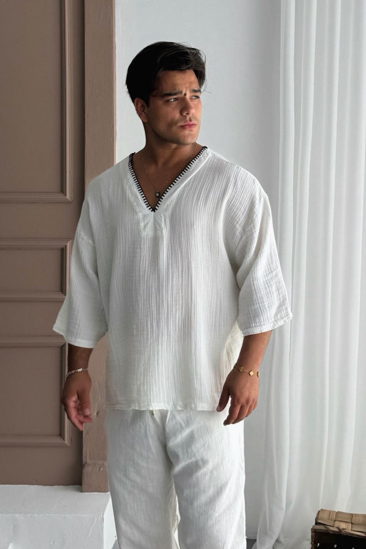 Beyaz Müslin Kumaş V Yaka Fakir Kol