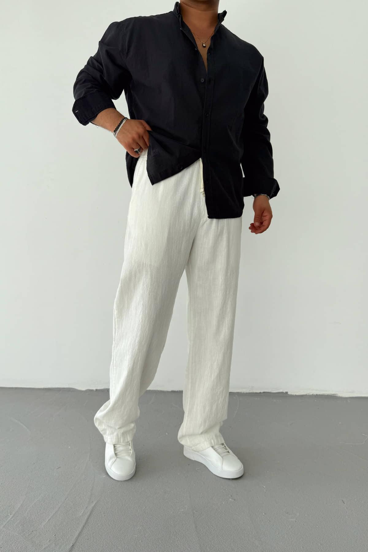 Krem Yüksek Kalite Keten Pantolon Siyah Yüksek Kalite Keten Pantolon