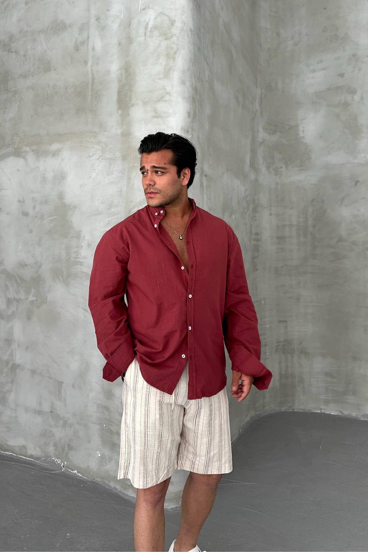 Bordo Fresh Keten Gömlek