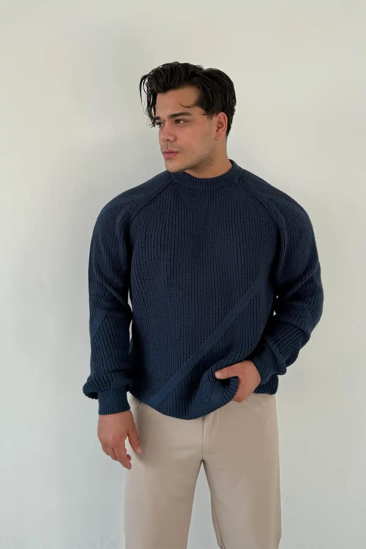Desenli Bisiklet Yaka Kazak Indıgo