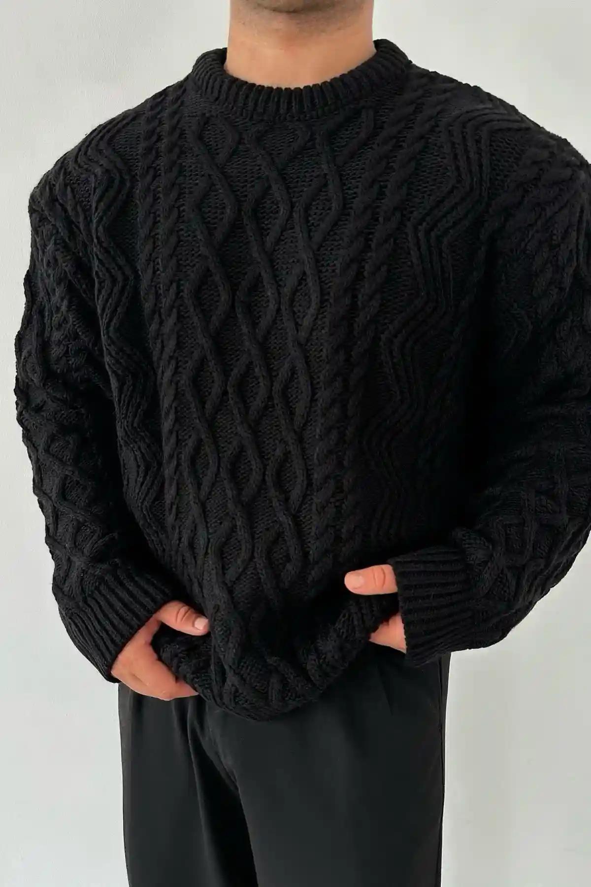 Desenli Örme Kazak Siyah