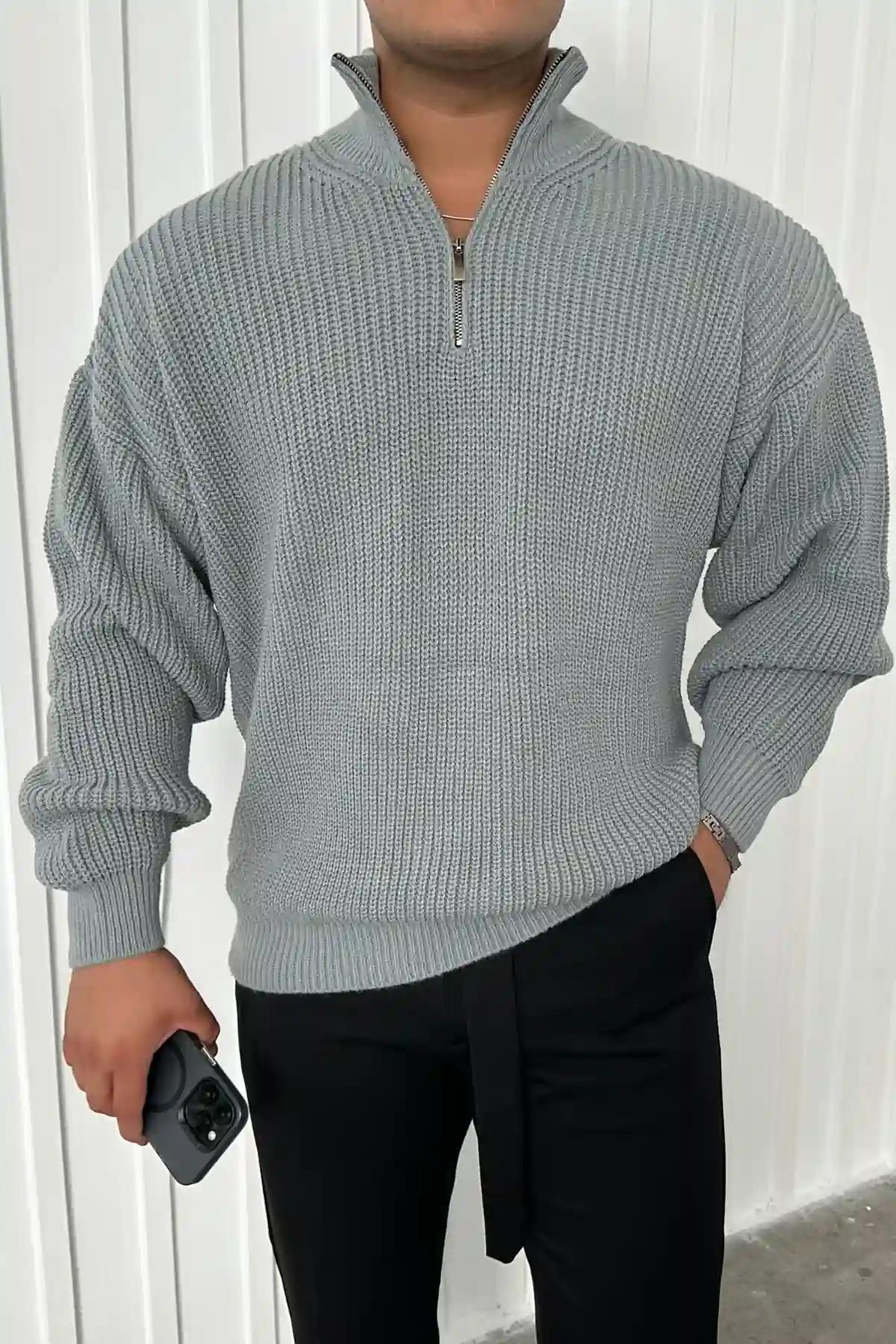 Fermuarlı Örme Kazak Kahve Fermuarlı Örme Kazak Yeşil Fermuarlı Örme Kazak İndigo