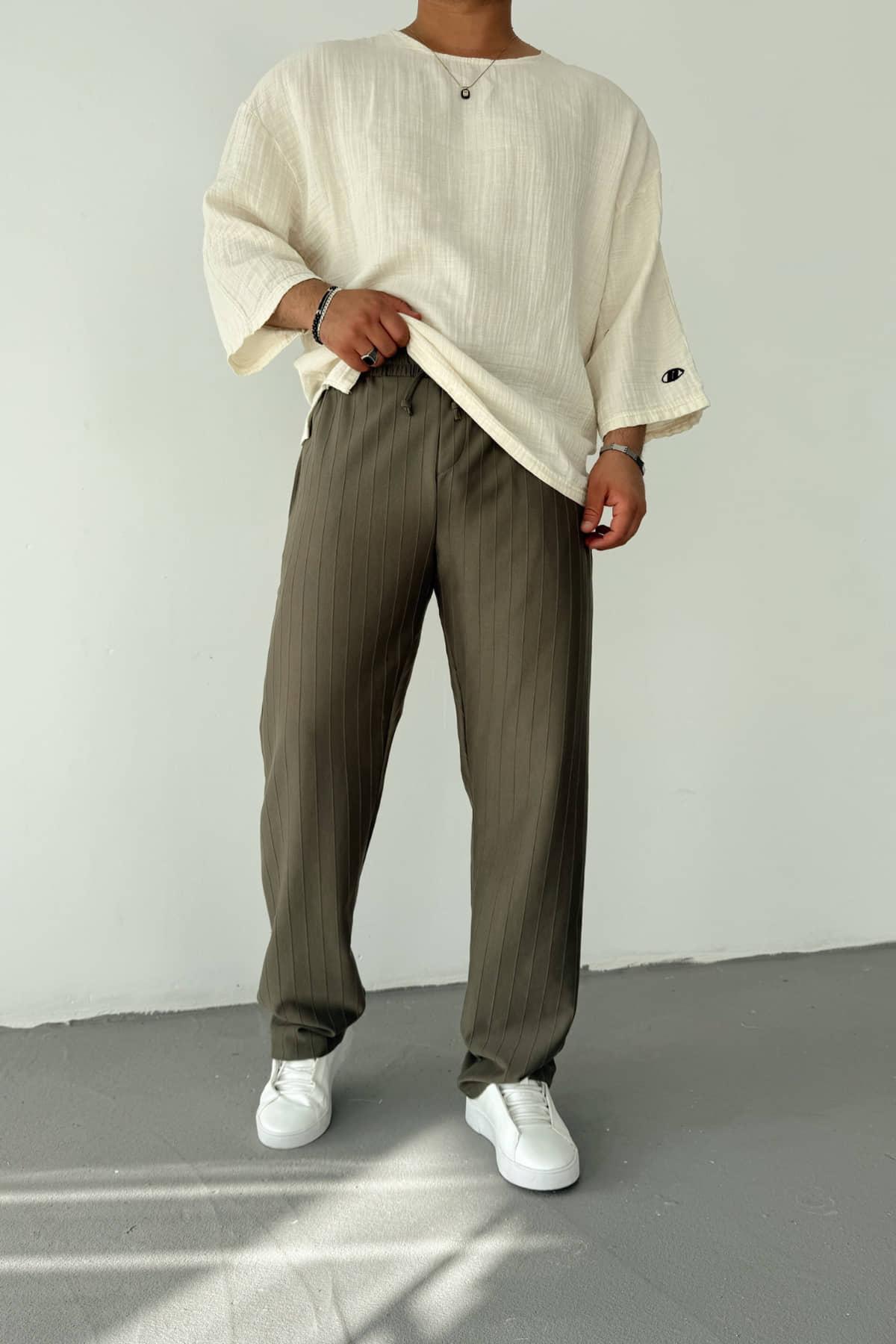 Haki Yeşil Şeritli Baggy Pantolon