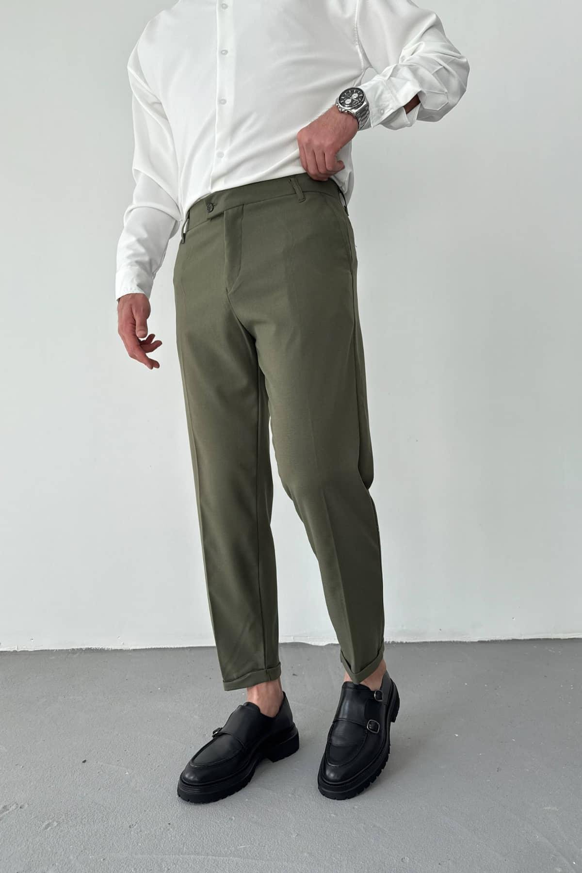 Haki Yeşil Yazlık Kumaş Kısa Dilli Pantolon