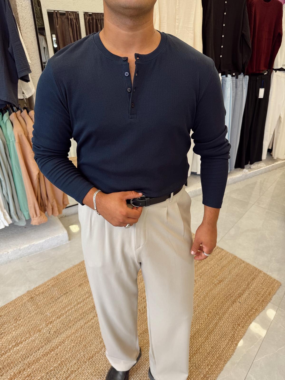 Hakim Yaka T-shirt Lacivert