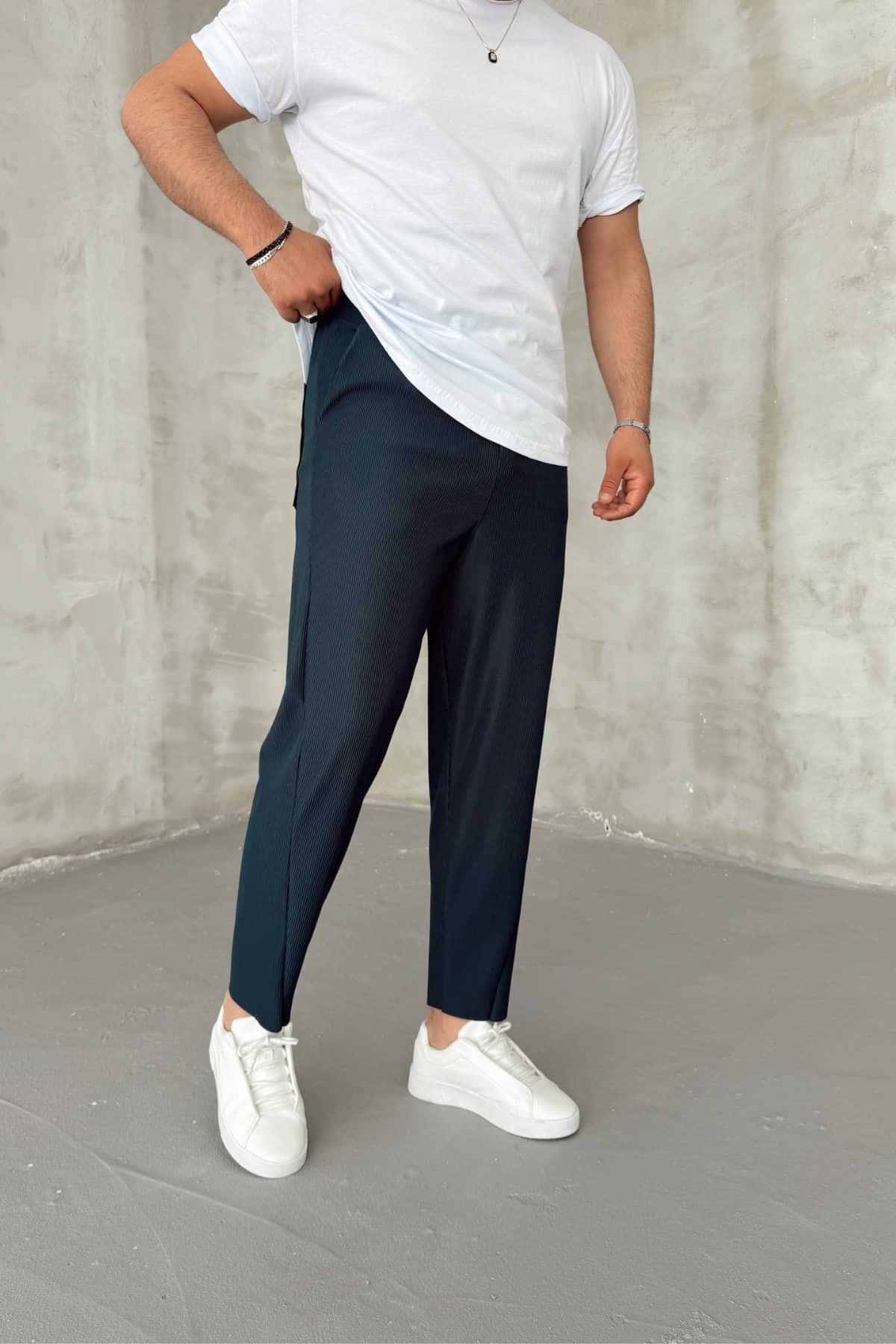 İndigo İnce Fitilli Asimetrik Kesim Pantolon
