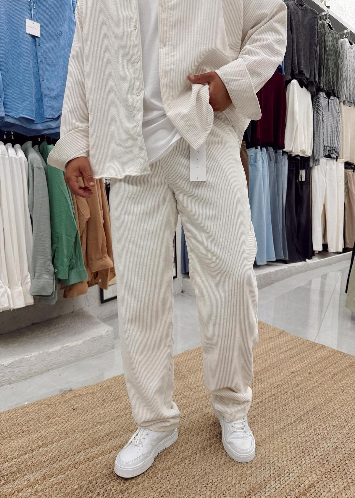 Kadife Baggy  Pantolon Beyaz