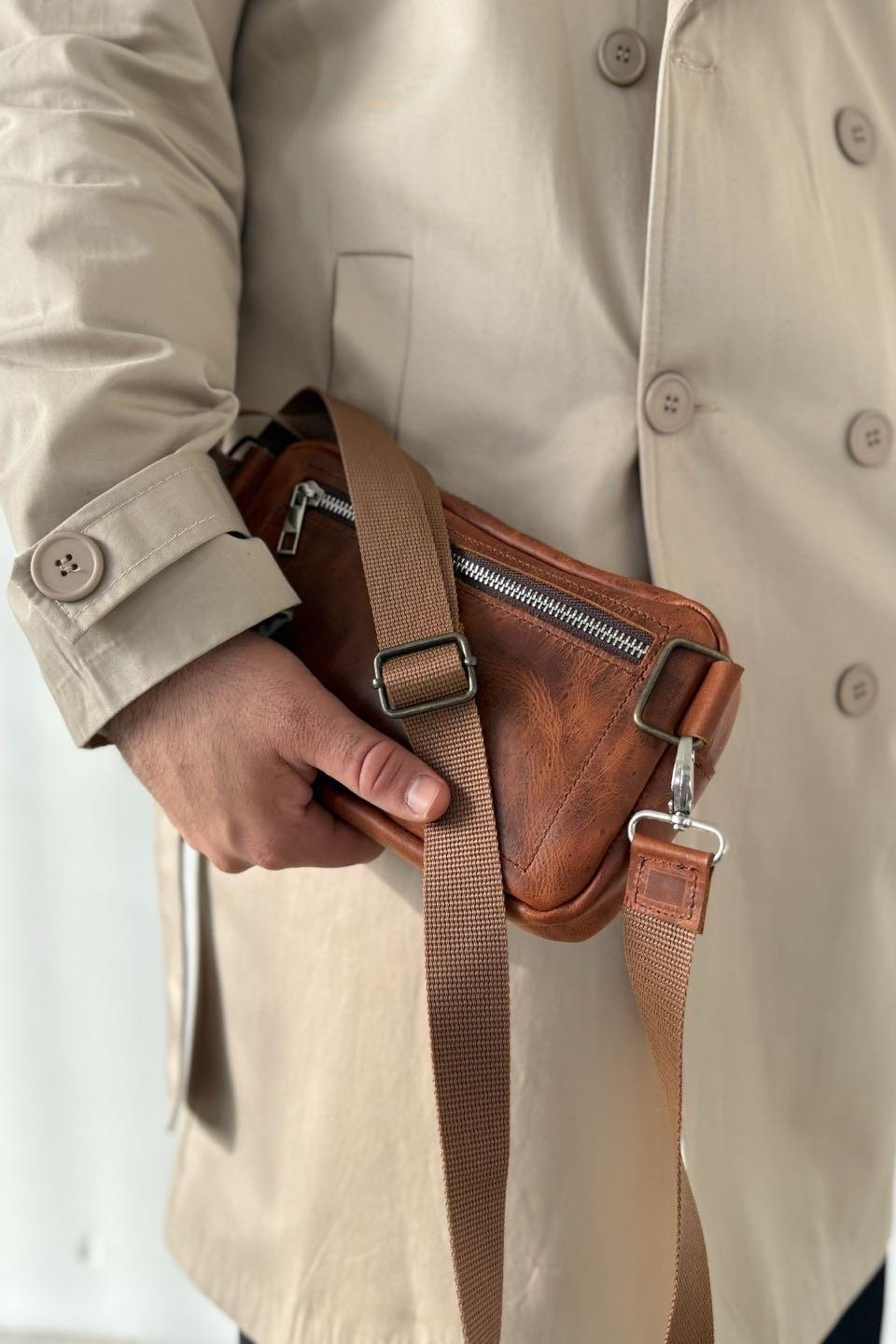 Kahve Orjinal Deri Çapraz Askılı Çanta