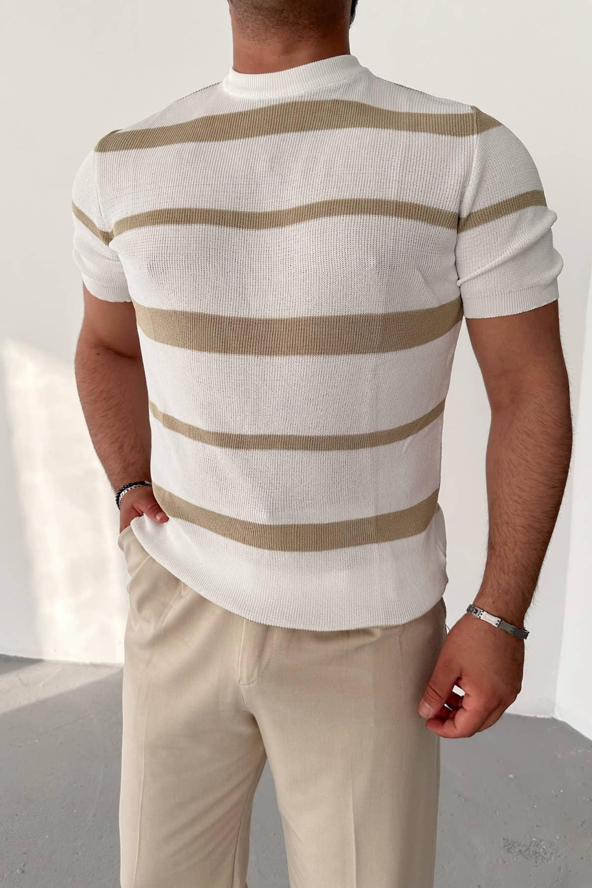 Krem Çizgili Triko