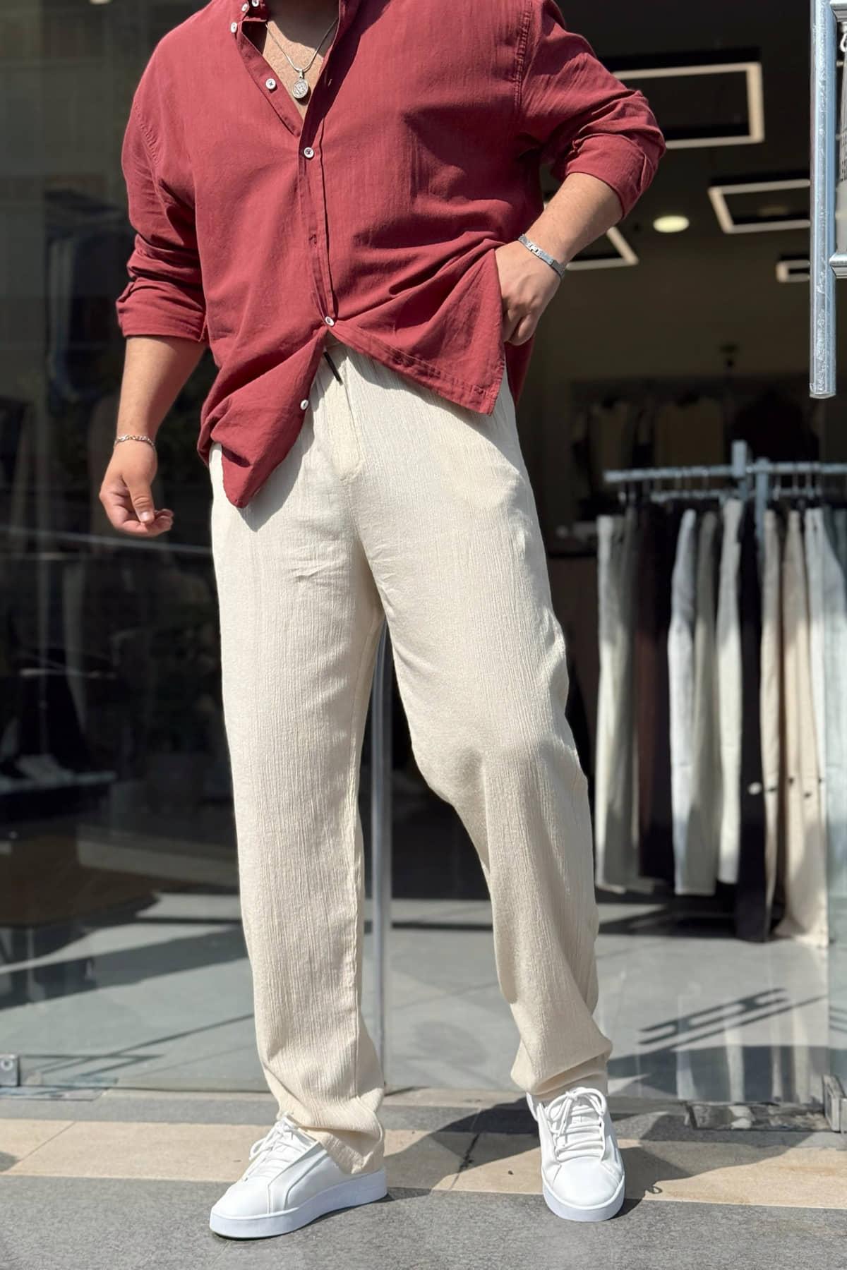 Krem Kırınkıl Boru Paça Pantolon Siyah Kırınkıl Boru Paça Pantolon
