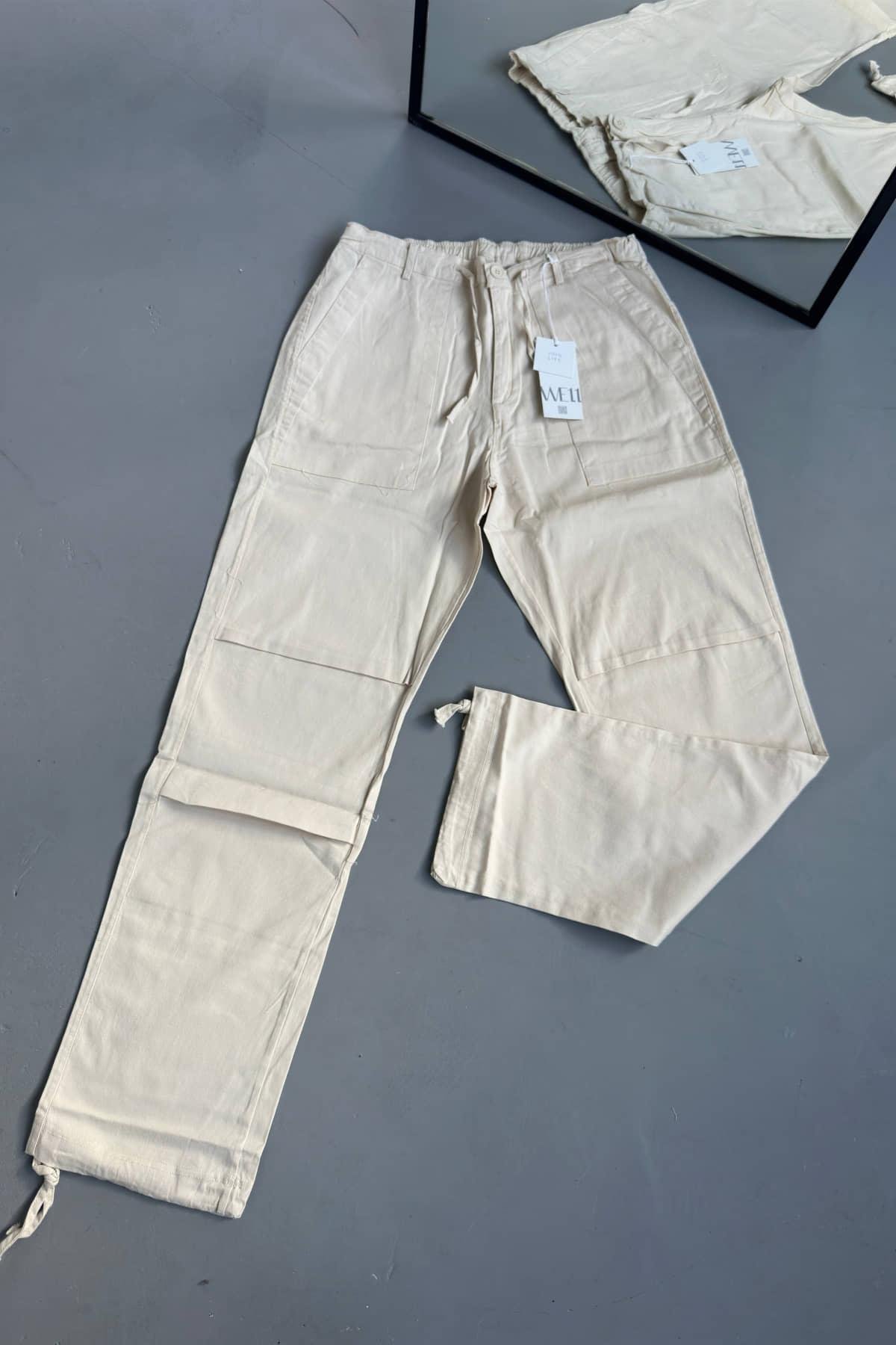 Krem Paça İpli Detaylı Gabardin Pantolon