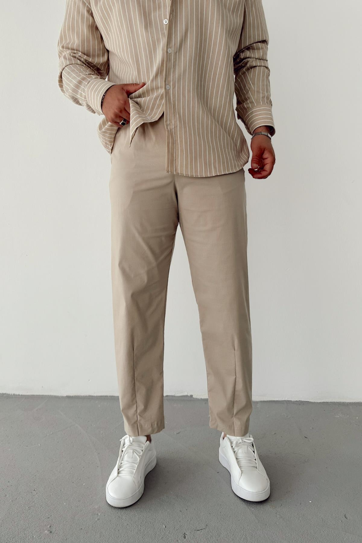 Krem Paraşüt Kumaş Paça Çizgili Pantolon