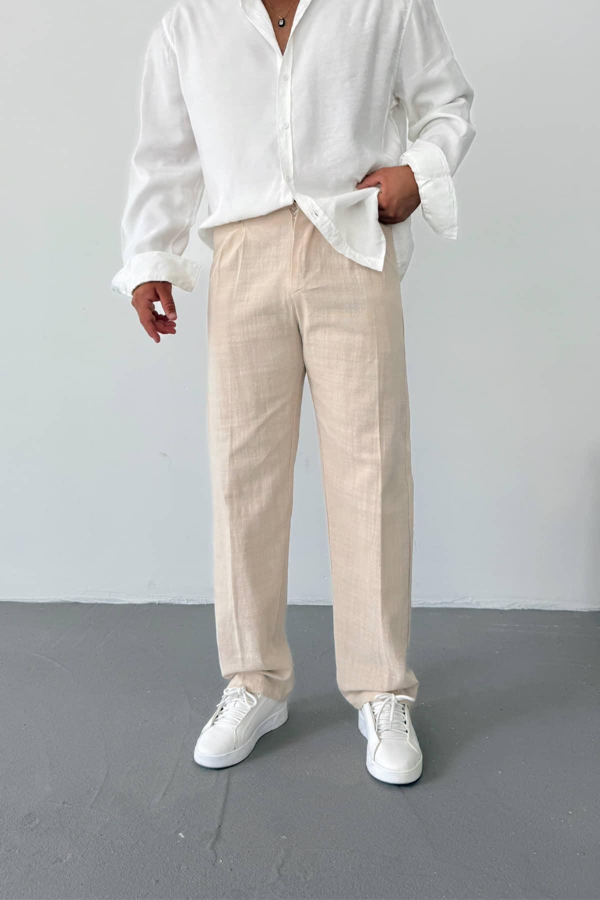 Kahve Pileli Keten Baggy Pantolon Yeşil Pileli Keten Baggy Pantolon Beyaz Pileli Keten Baggy Pantolon