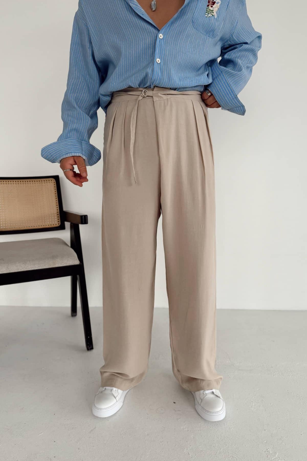 Krem Tensel İnce Kemerli Palazzo Pantolon