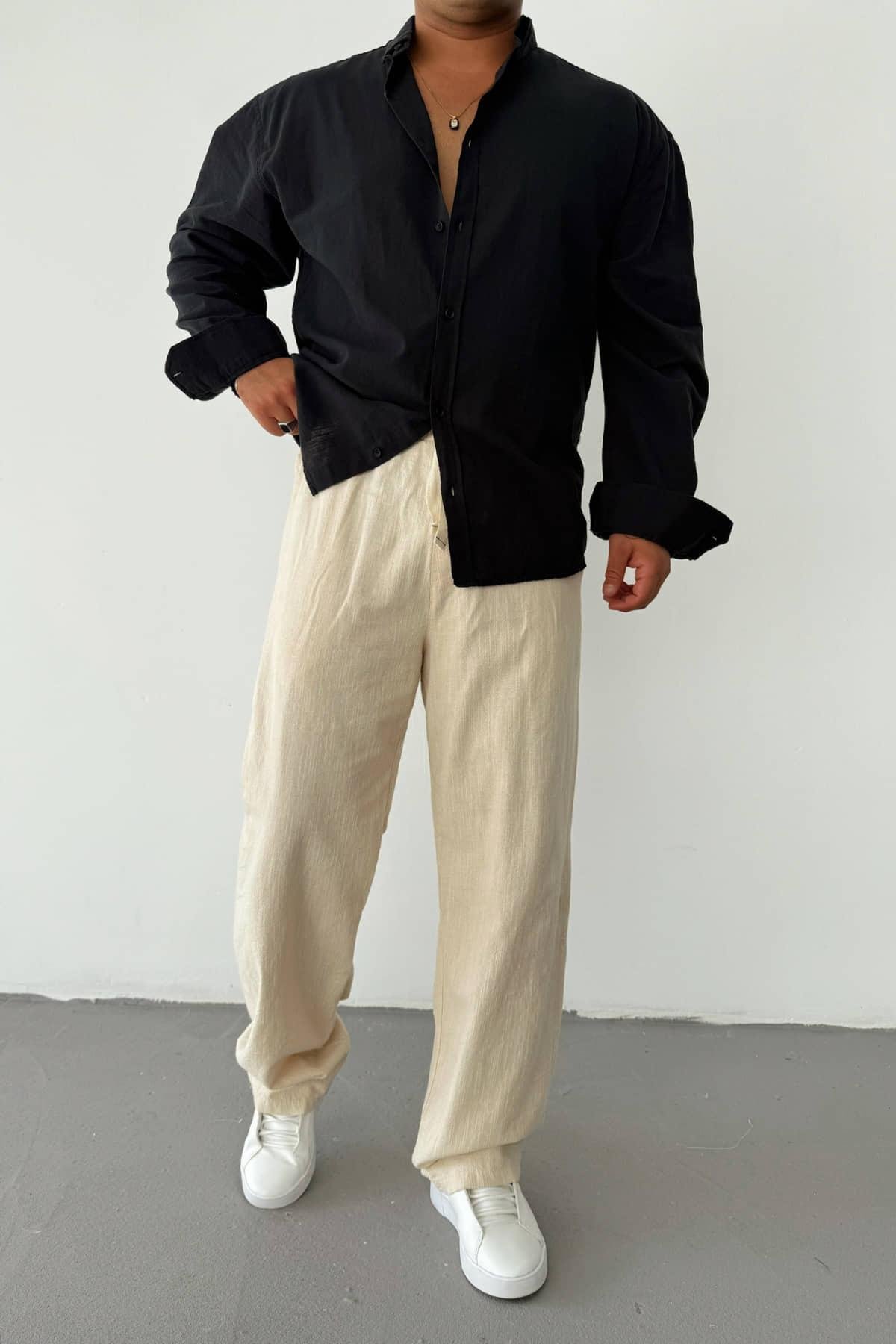 Siyah Yüksek Kalite Keten Pantolon Beyaz Yüksek Kalite Keten Pantolon
