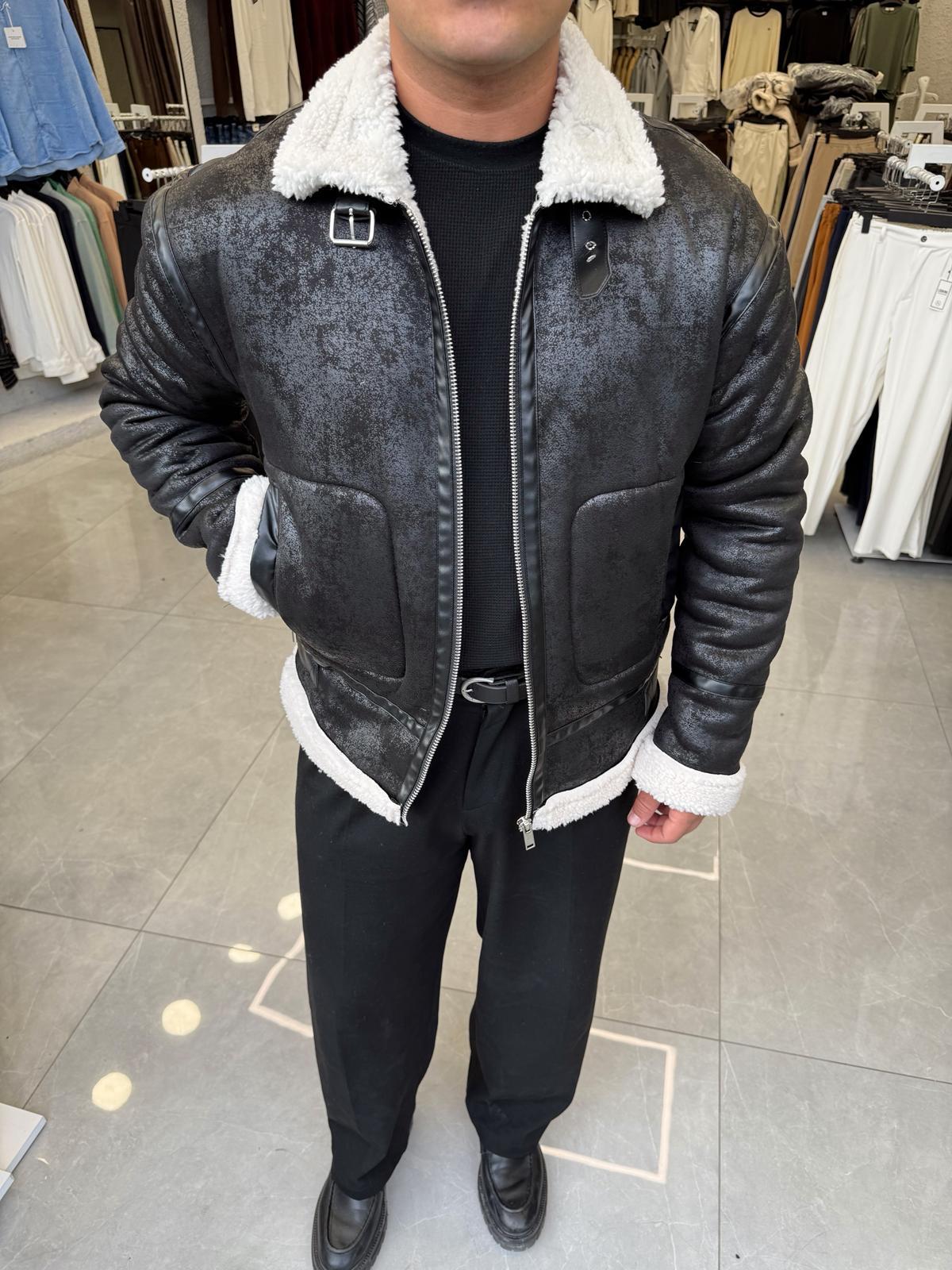 Kürklü Parlak Deri Mont Siyah Kürklü Parlak Deri Mont Bej