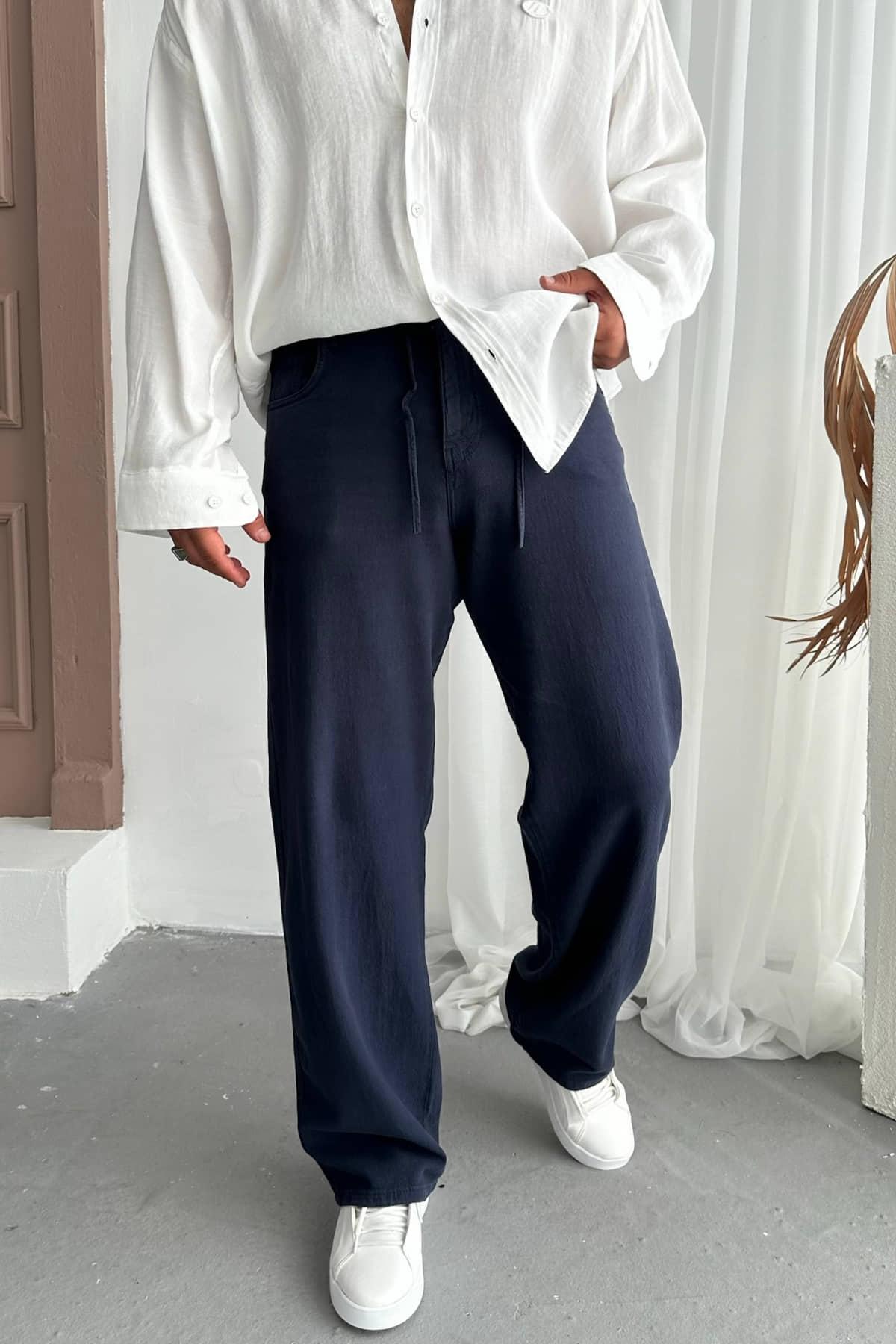 Lacivert Gabardin İpli Baggy Pantolon