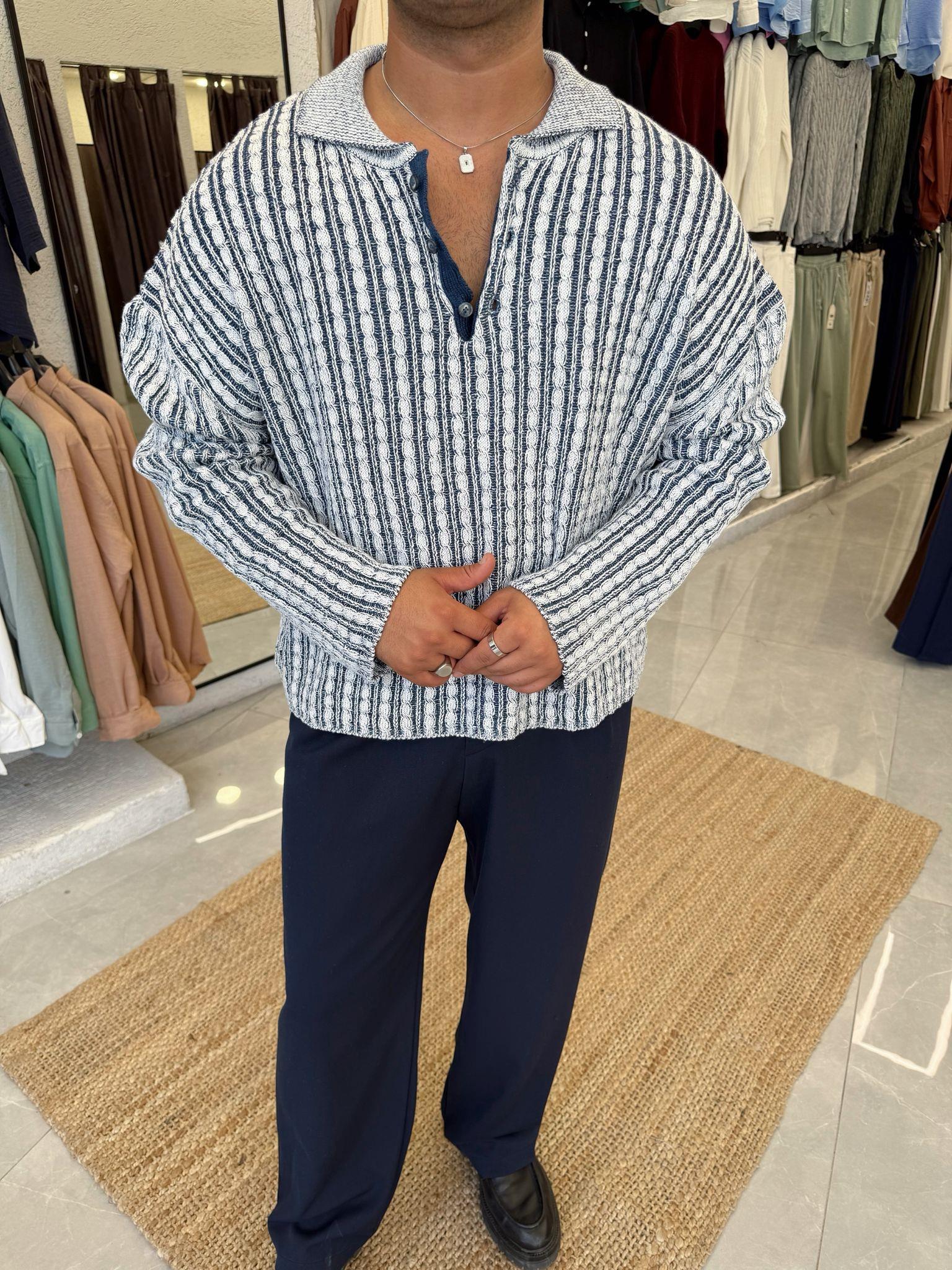 Örgü Desenli Polo Yaka Lacivert