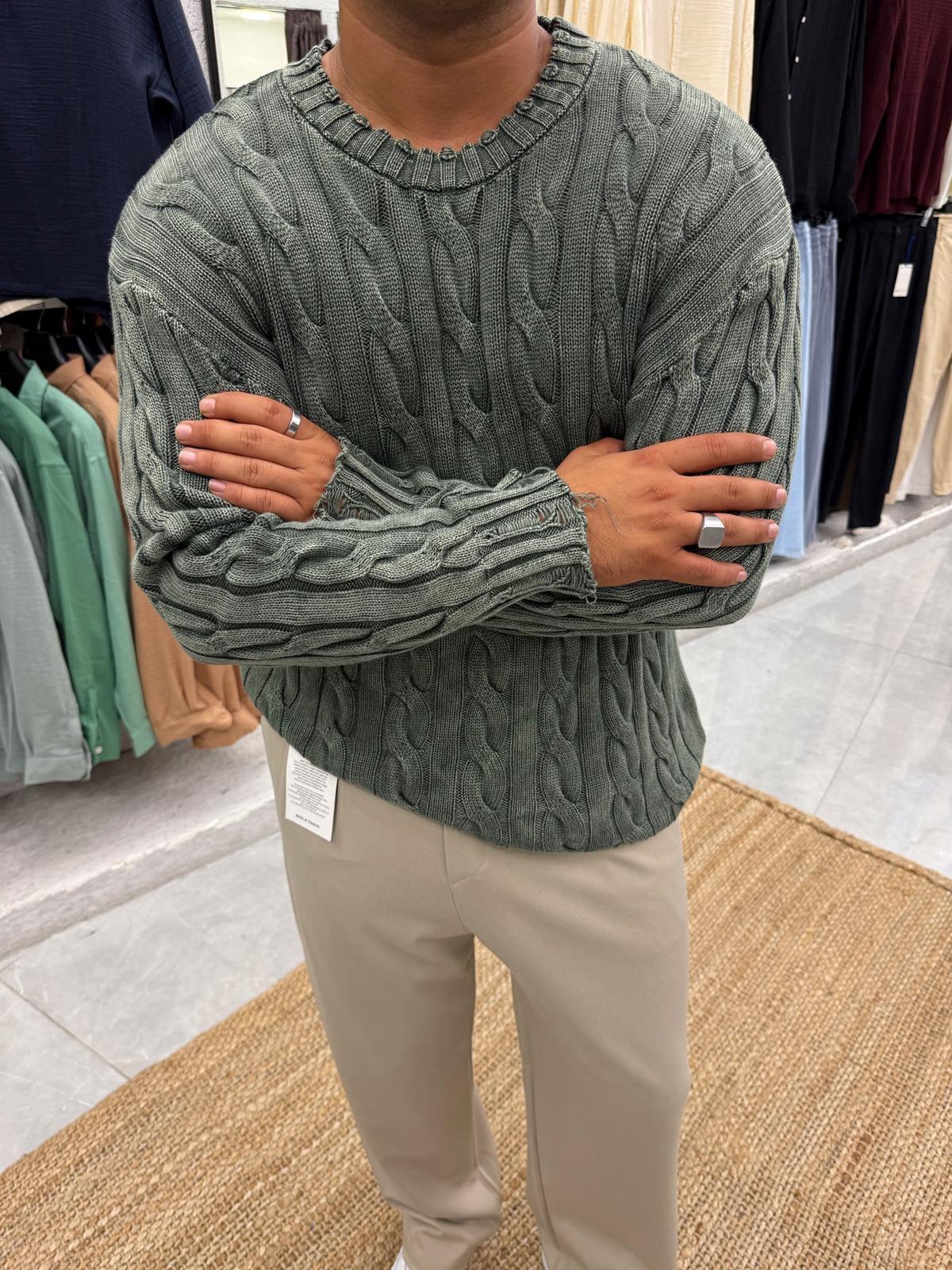 Örgü Desenli Yıkamalı Kazak Mavi Örgü Desenli Yıkamalı Kazak Açık Gri Örgü Desenli Yıkamalı Kazak Gri