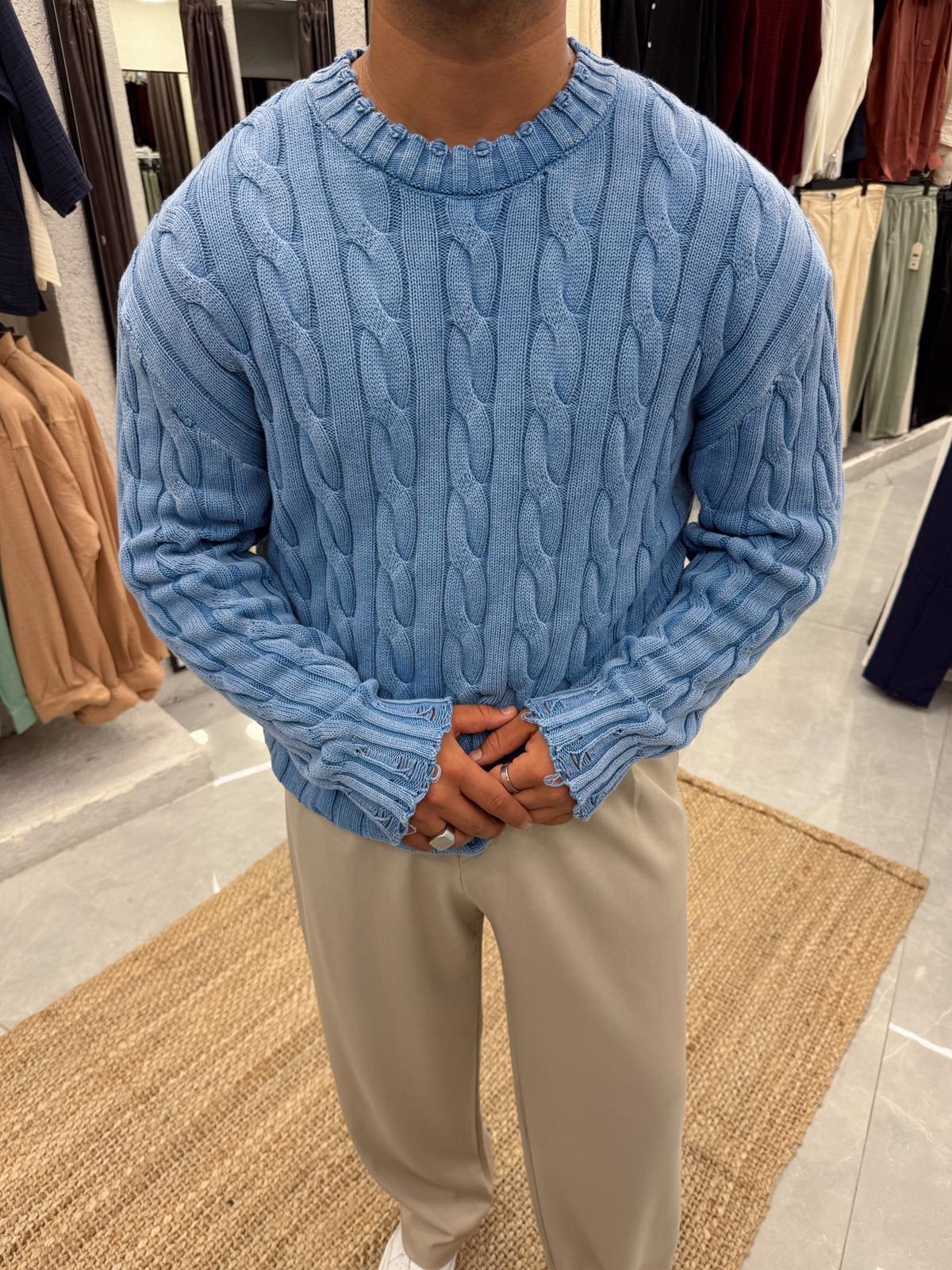 Örgü Desenli Yıkamalı Kazak Haki Örgü Desenli Yıkamalı Kazak Açık Gri Örgü Desenli Yıkamalı Kazak Gri