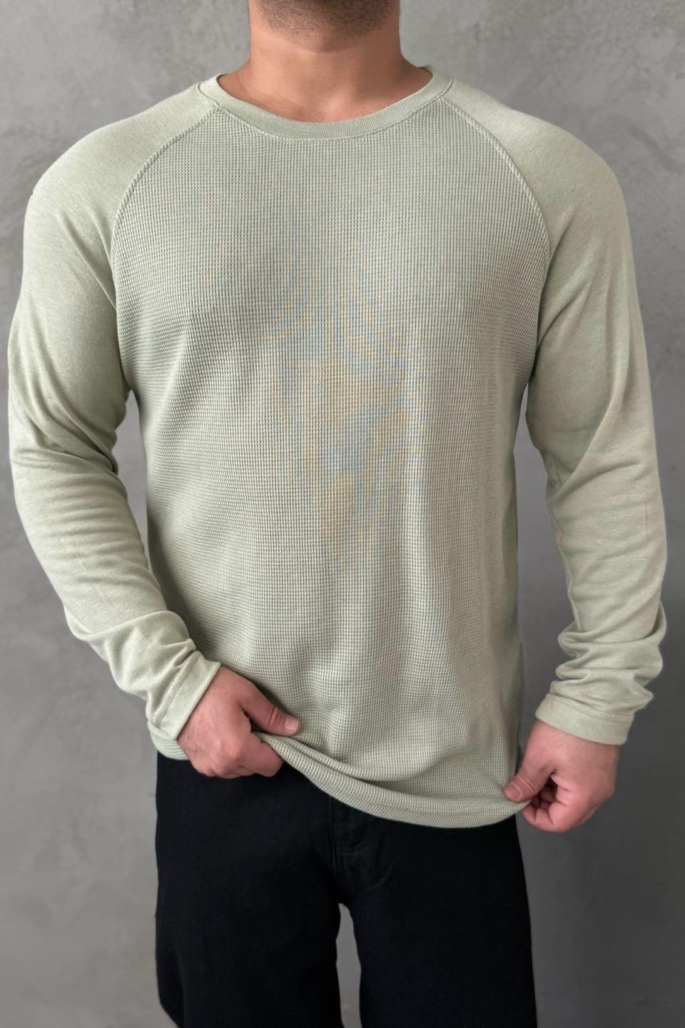 Yeşil Waffle Kumaş Reglan Kol Sweat