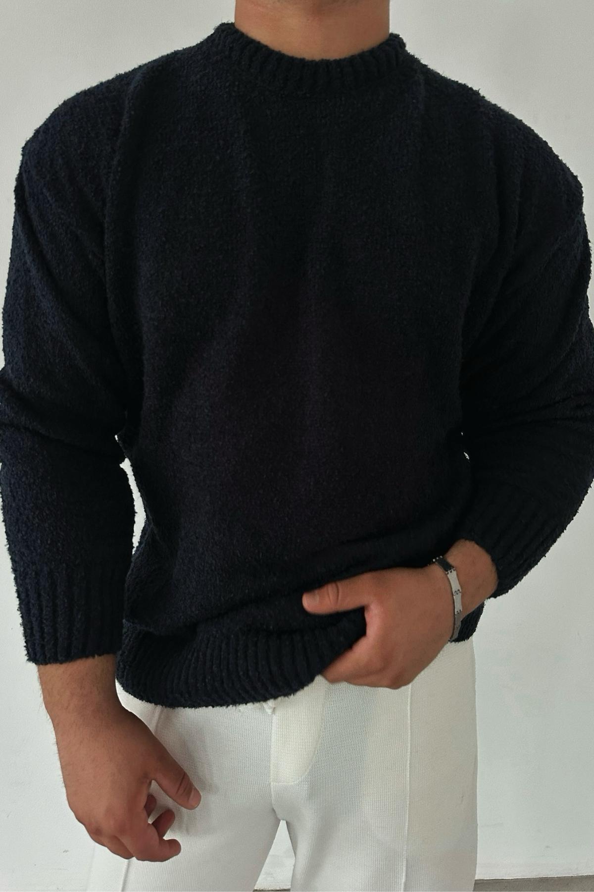 Regular Kalıp Bisiklet Yaka Siyah Kazak