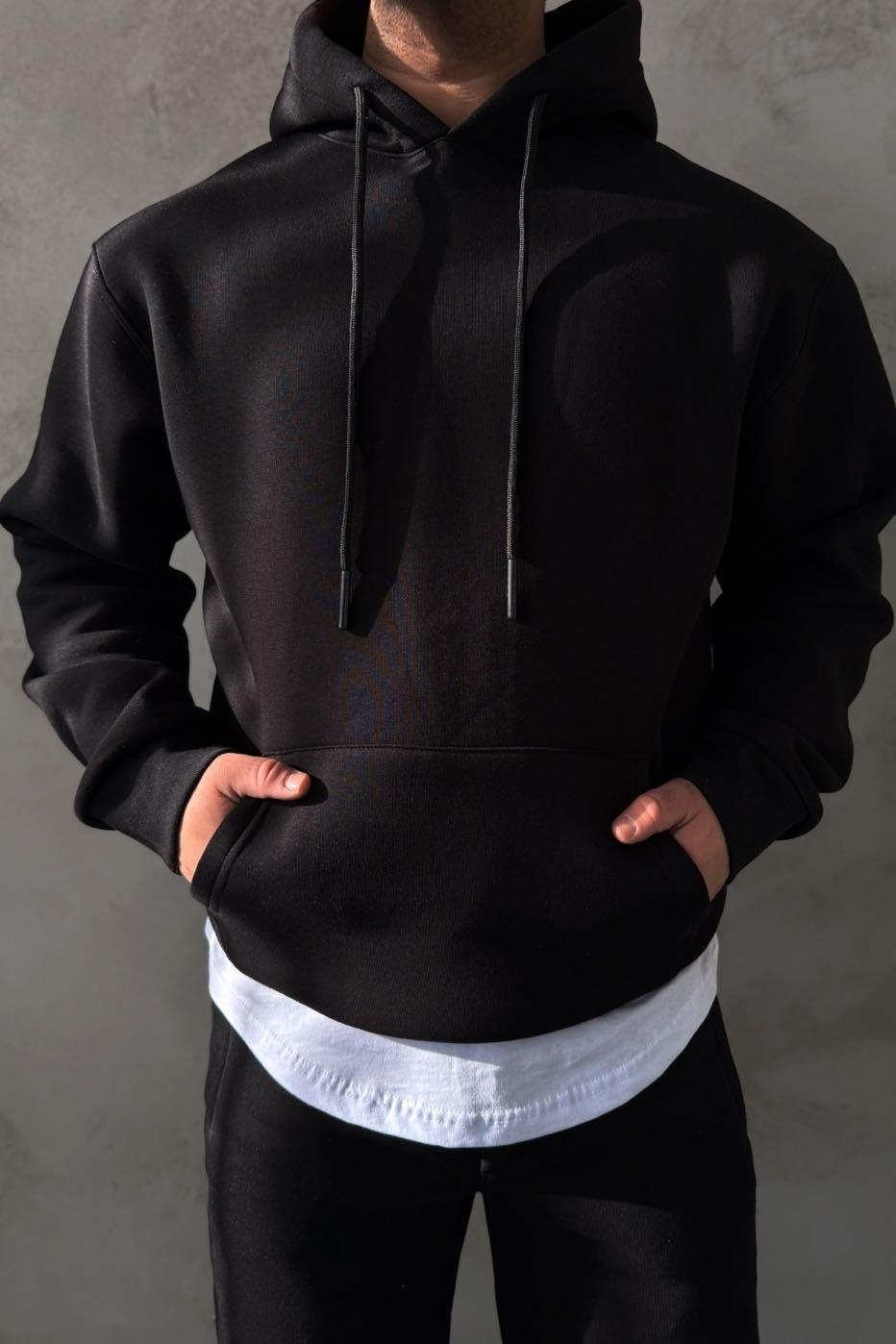 Siyah 3 İplik Kapüşonlu Sweat