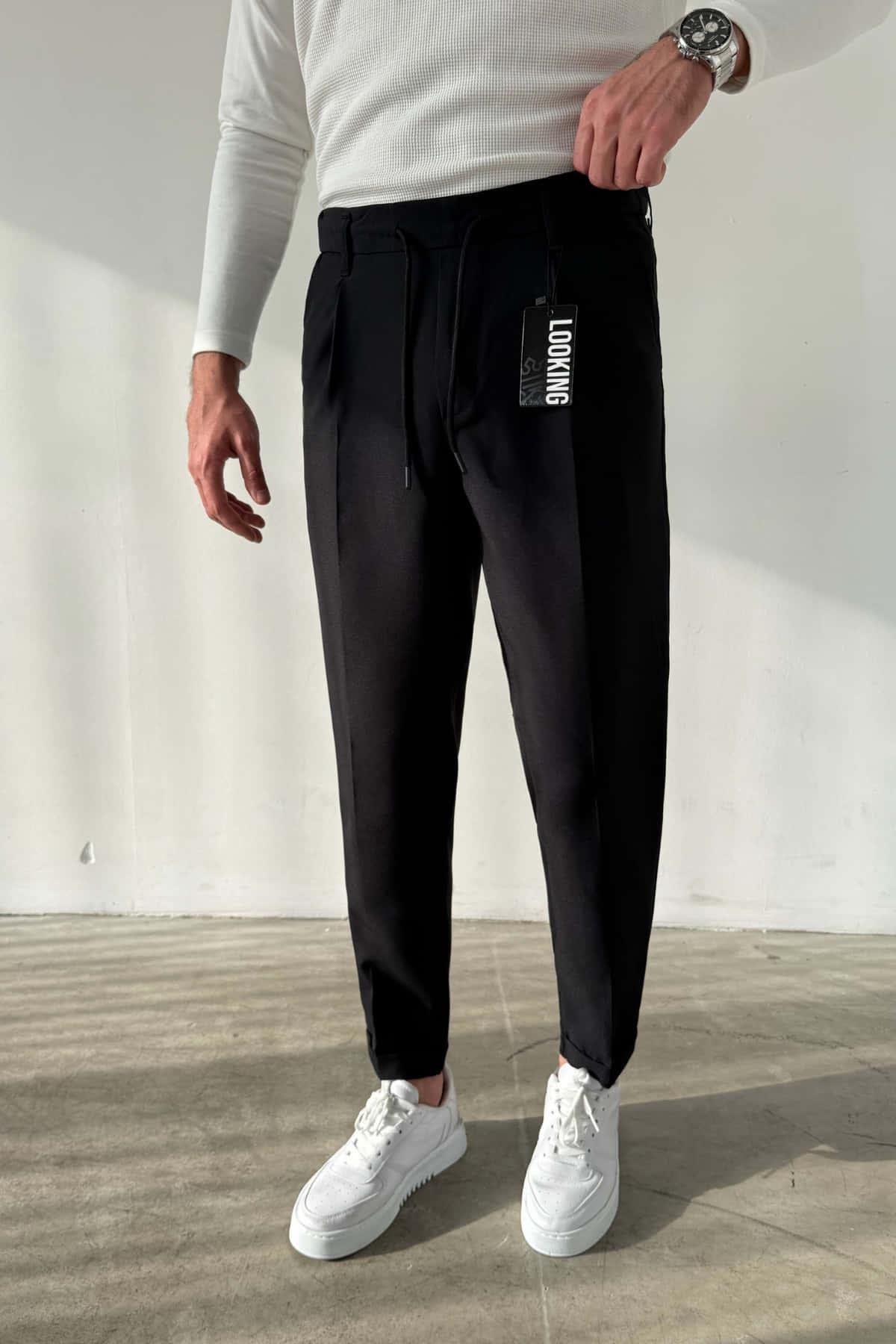 Siyah Bel Lastikli Jogger Pantolon