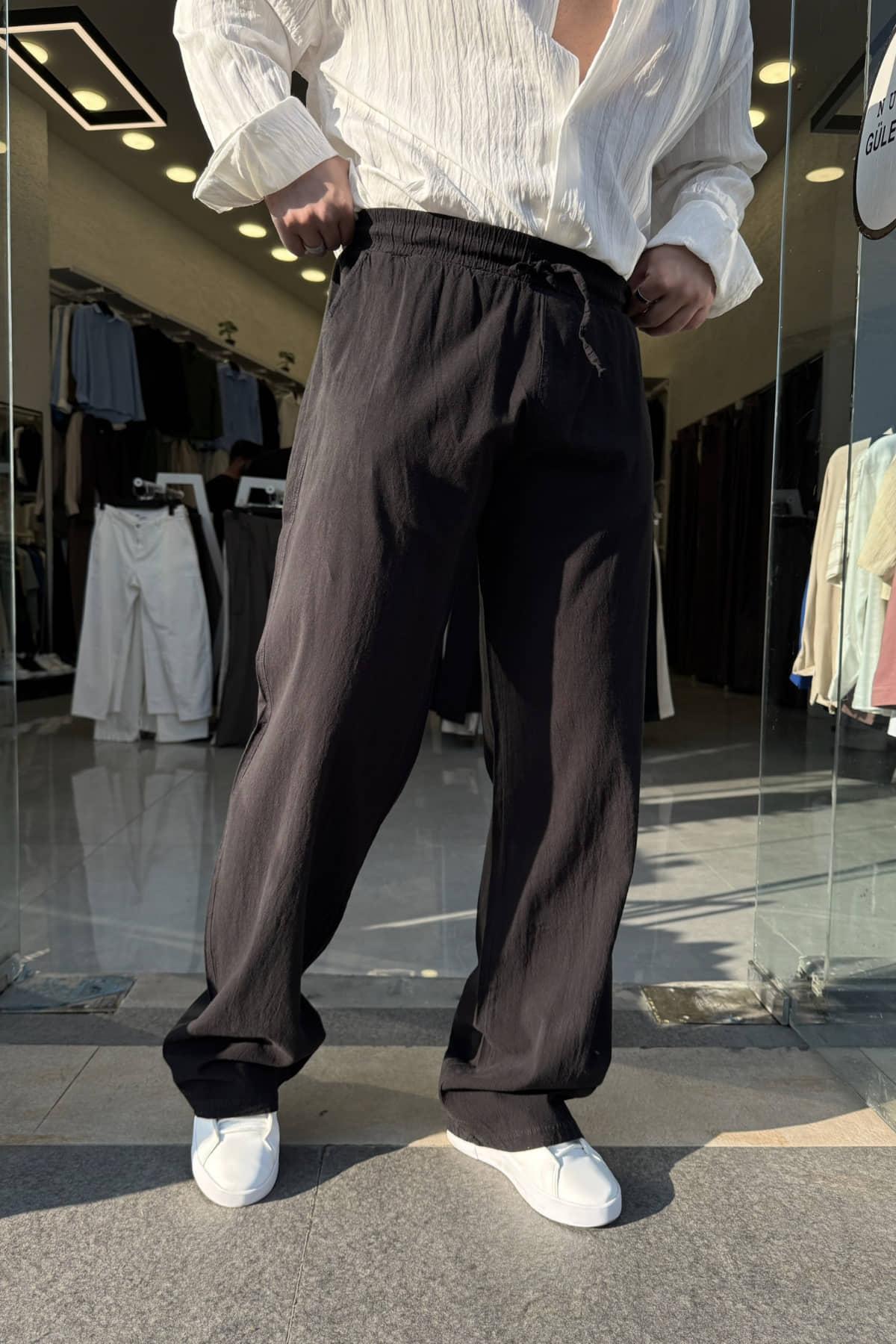 Siyah Bol Kalıp Keten Pantolon
