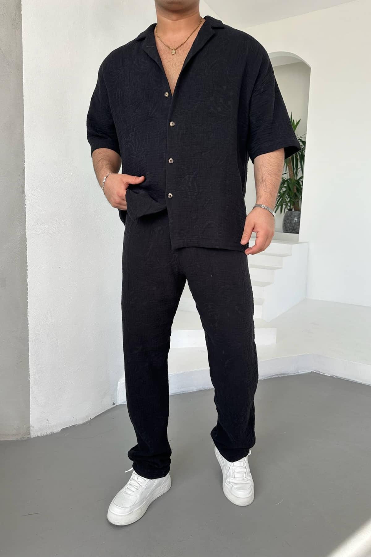 Siyah Desenli Müslin Kumaş Takım