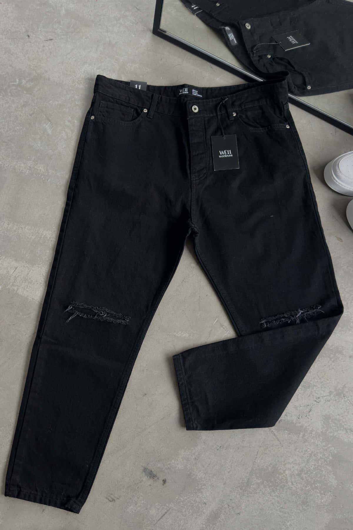 Siyah Dizi Yırtık Boyfriend Kot Pantolon