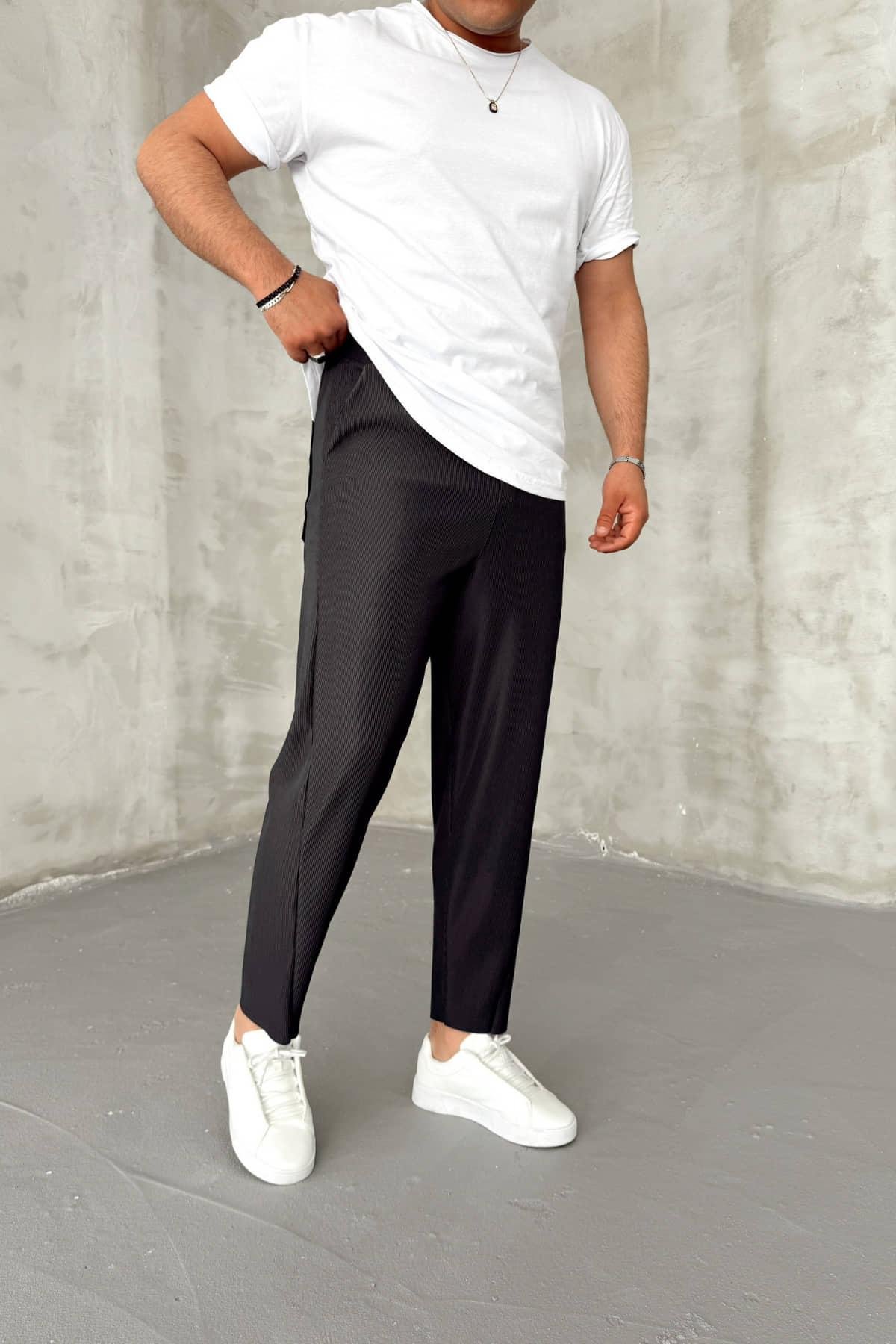 Siyah İnce Fitilli Asimetrik Kesim Pantolon