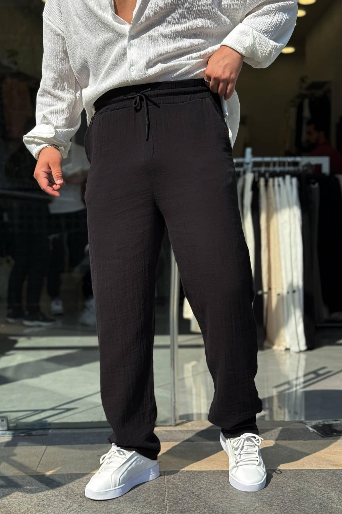 Siyah Müslin Kumaş Boru Paça Pantolon