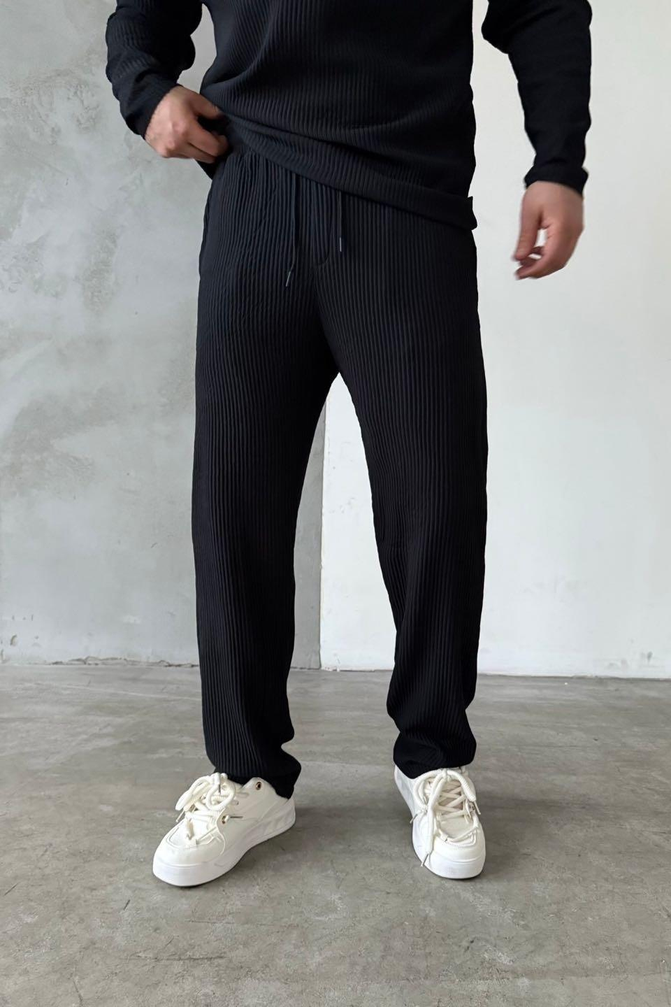 Siyah Ottoman Kumaş Fitilli Pantolon