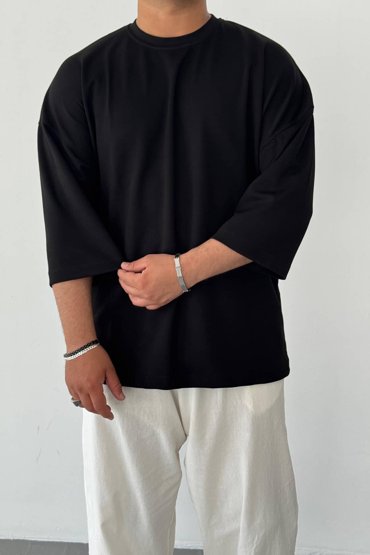 Siyah Oysho Kumaş Fakir Kol T-shirt