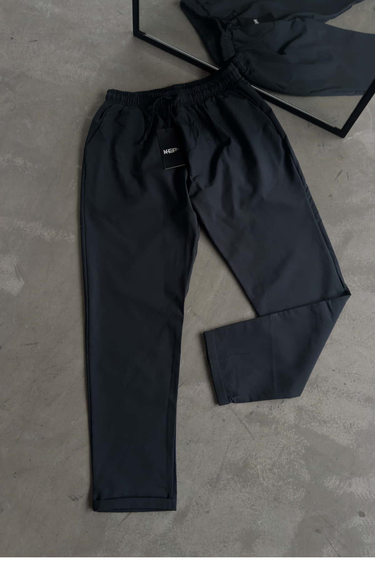 Siyah Paraşüt Kumaş Duble Paça Jogger