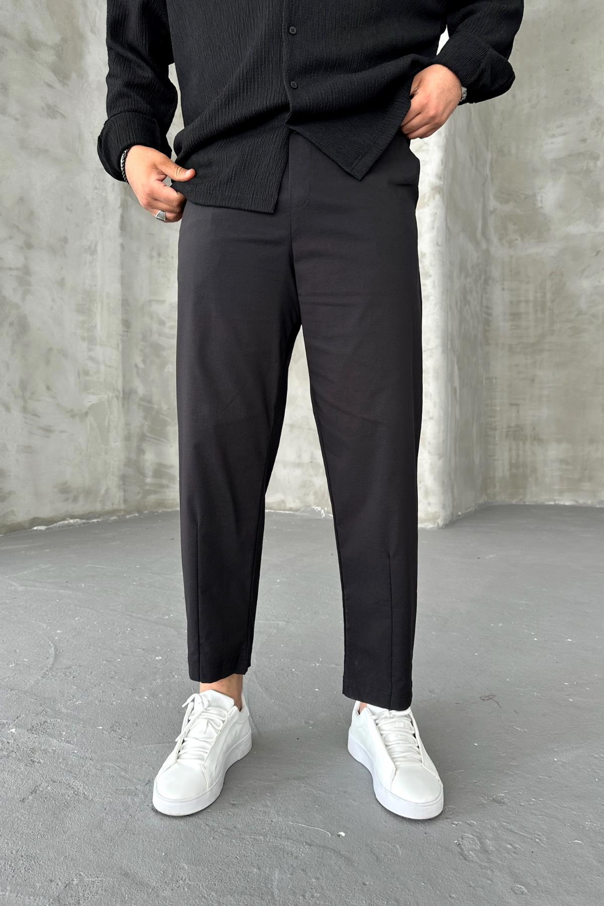 Siyah Paraşüt Kumaş Paça Çizgili Pantolon