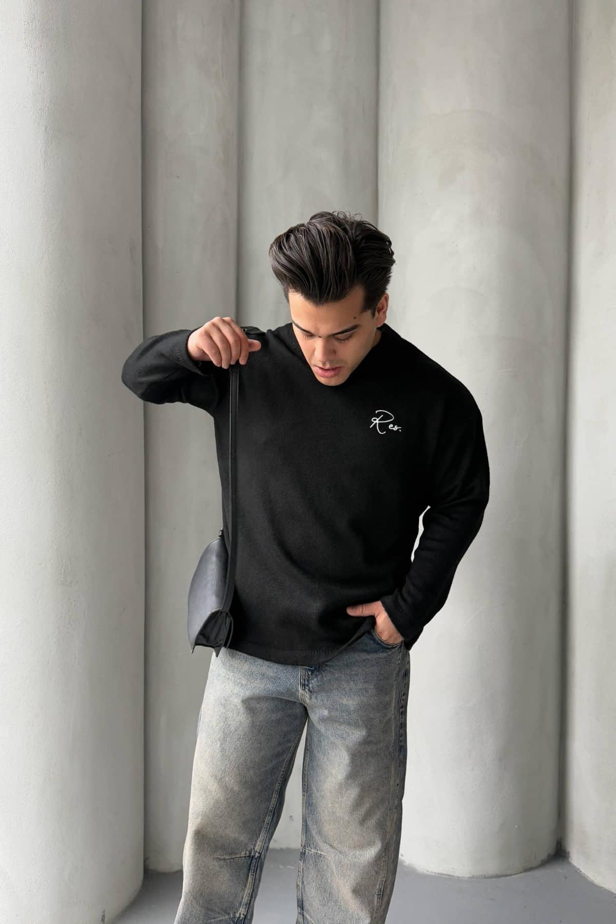 Krem Respire Nakışlı Kazak Saks Mavi Respire Nakışlı Kazak