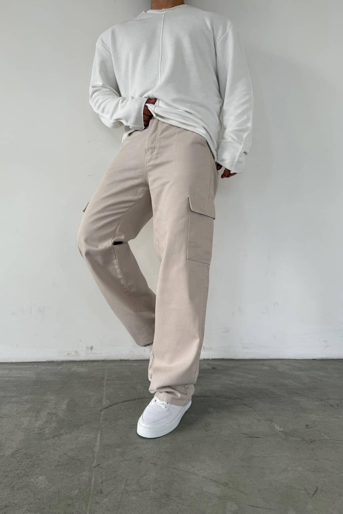 Buz Mavi Kot Kargo Cep Pantolon Beyaz Kot Kargo Cep Pantolon