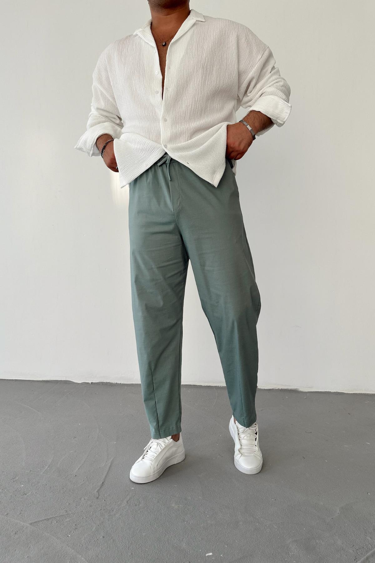 Yeşil Paraşüt Kumaş Paça Çizgili Pantolon