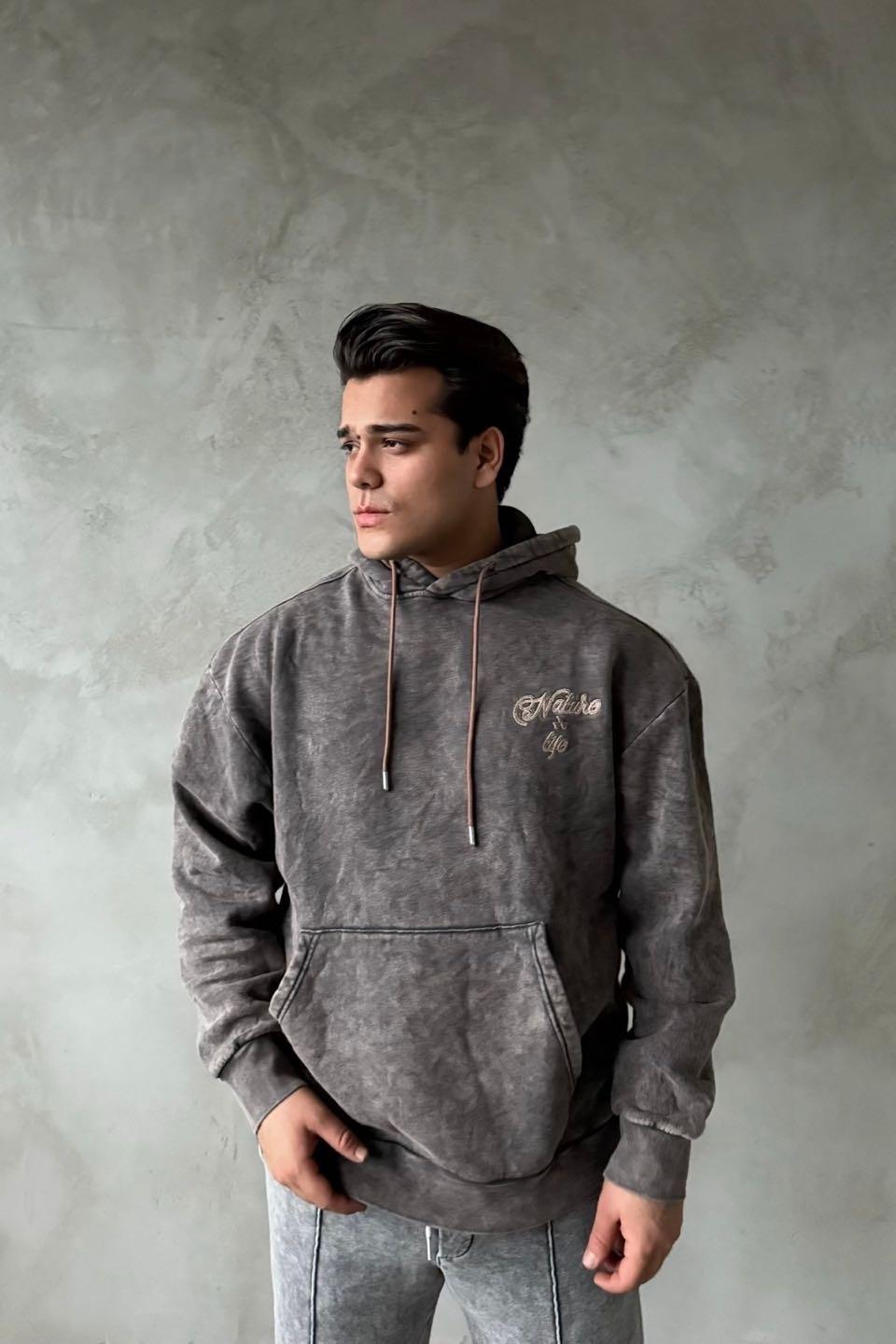 Yıkamalı Kahve  Kanguru Cep Sweat