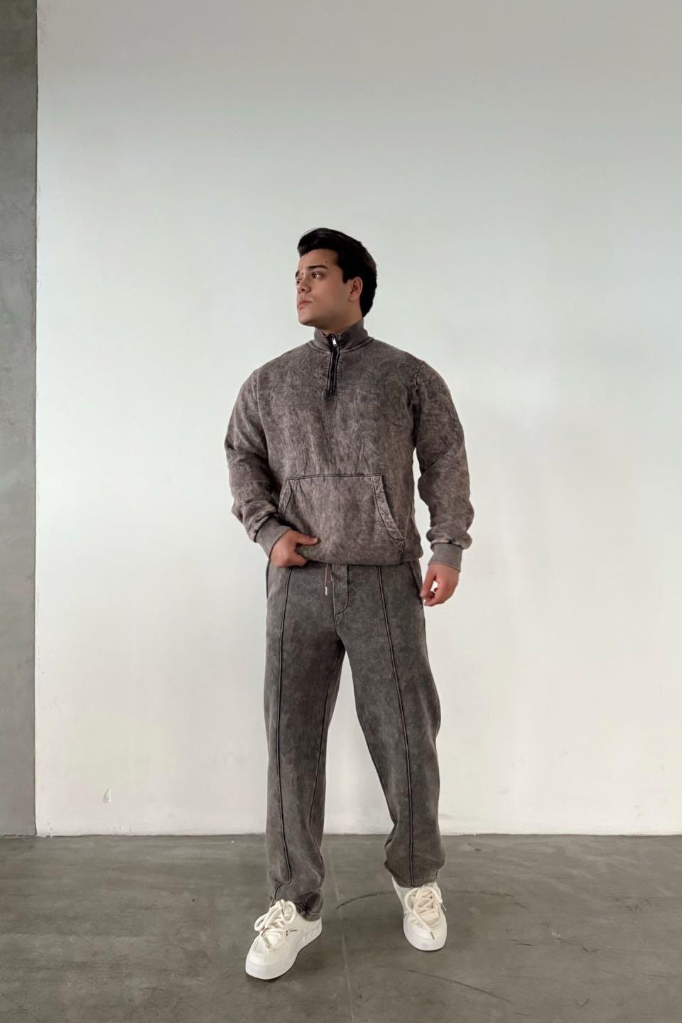 Yıkamalı Kahve Yarım Boğazlı Sweat