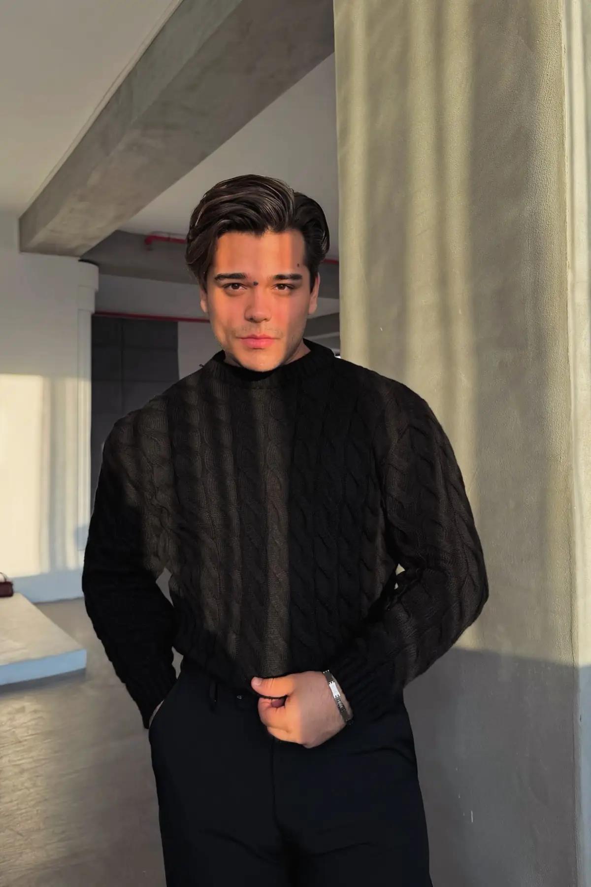 Zincir Desenli Yüksek Kalite Kazak Siyah